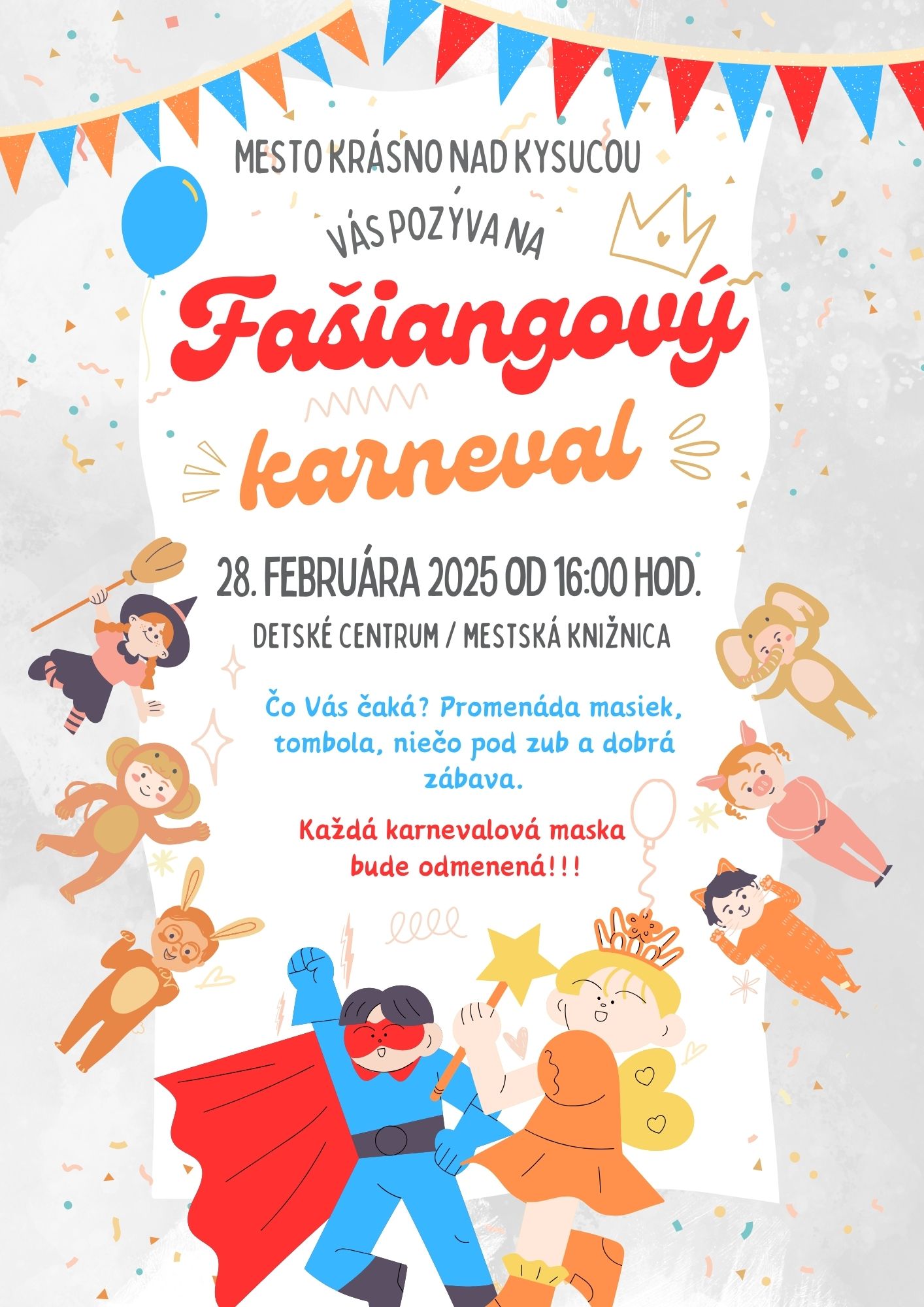 Pozvané sú všetky deti spolu so svojimi rodičmi v maskách, ktorí majú chuť prísť sa zabaviť!