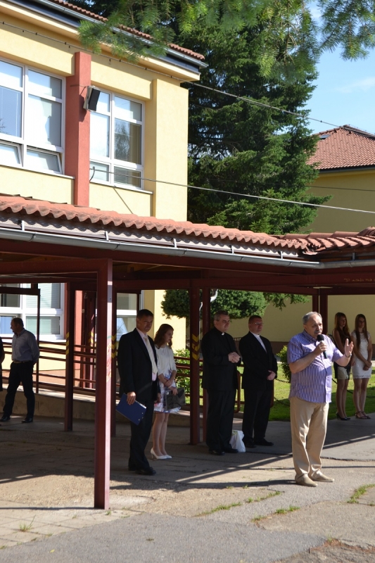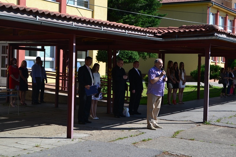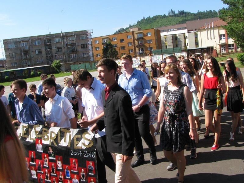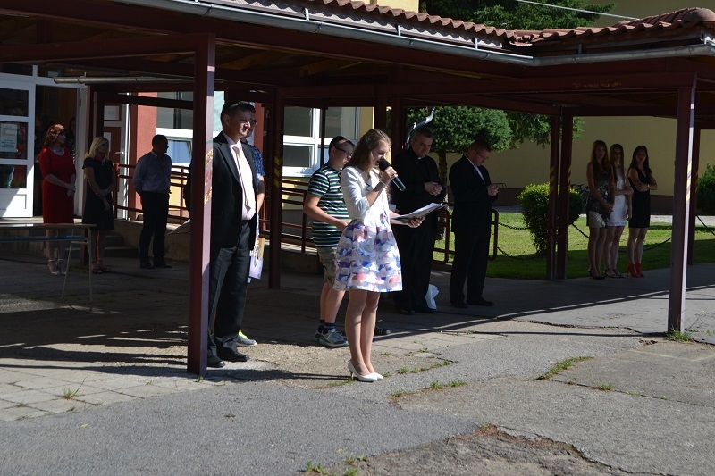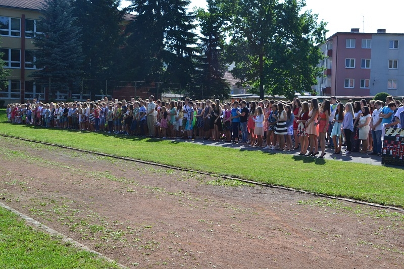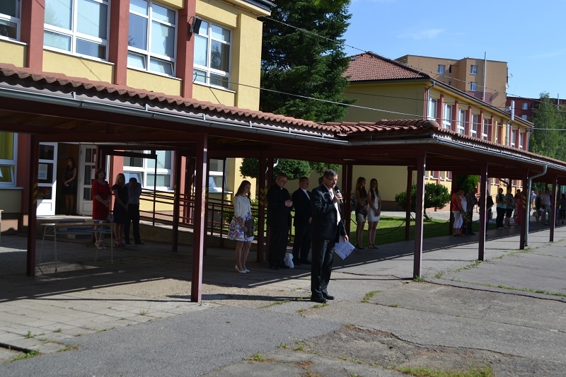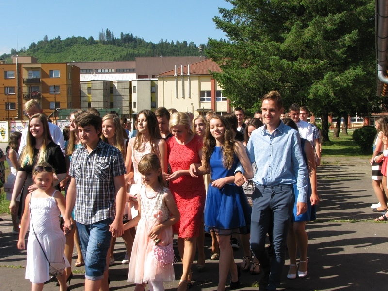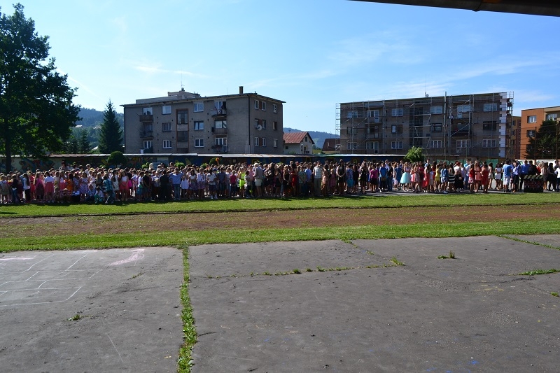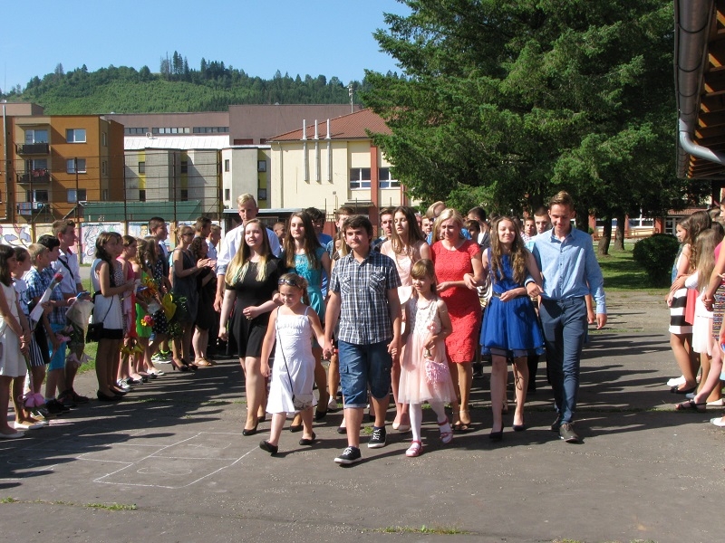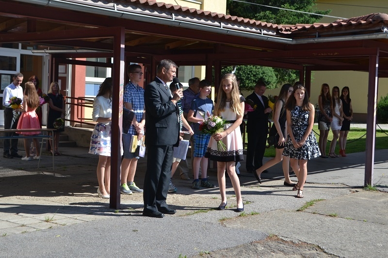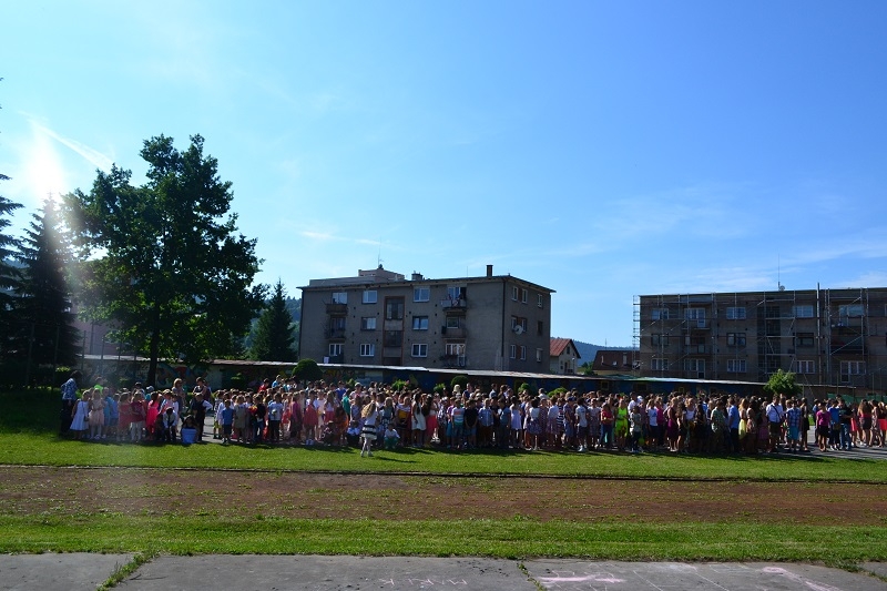 Po nej v zástupe na školskom ihrisku sa zhromaždil obrovský počet žiakov, ktorý sa nedal ani spočítať. Tí už netrpezlivo čakali na svoje vysvedčenie a na vytúženú vetu: „užite si letné prázdniny, v septembri sa uvidíme zas.“ Úvodné slová patrili ako inak riaditeľovi školy Vladimírovi Targošovi. Svojim príhovorom žiakov potešil aj primátor mesta Jozef Grapa, ktorý im zároveň poprial, aby načerpali mnoho síl počas prázdnin a vrátili sa tak oddýchnutí a plní elánu získavať nové znalosti počas školského roku 2016/2017.