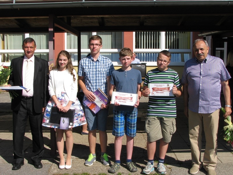 Svoje ocenenie si z rúk primátora mesta prevzala Soňa Gáborová z 9.A. Cenu riaditeľa získali: Jakub Haluška z 8.B, Andrej Lendóci z 8.A a Matej Ďurana 9.B. Všetkým srdečne gratulujeme a prajeme im ešte mnoho úspechov.
