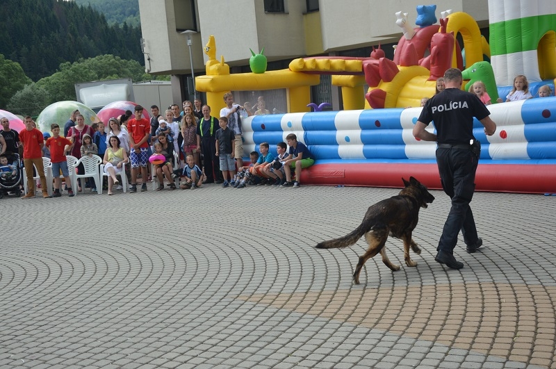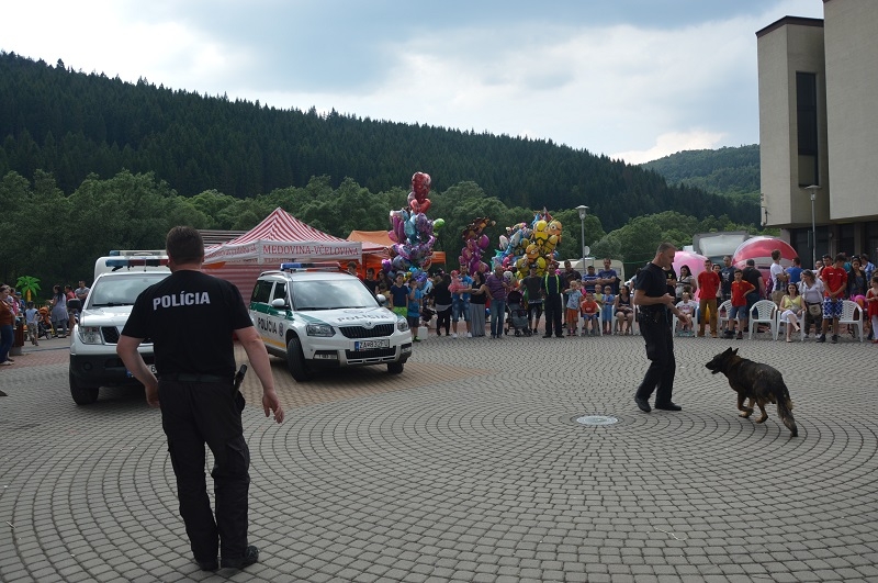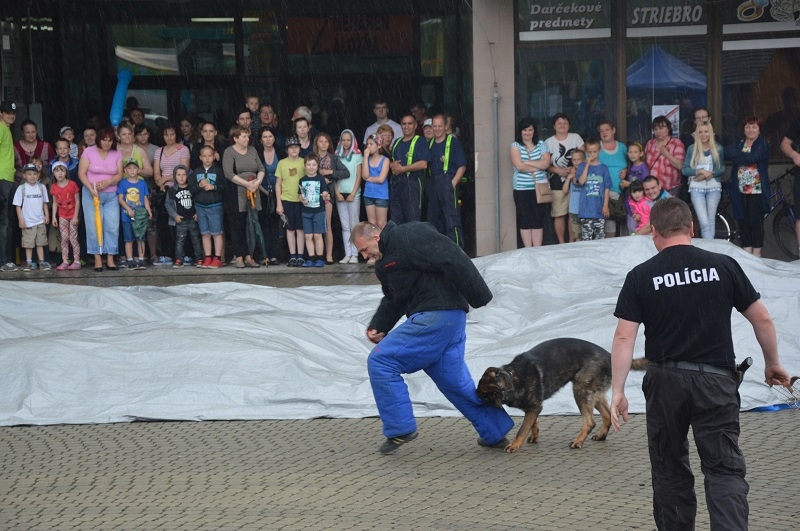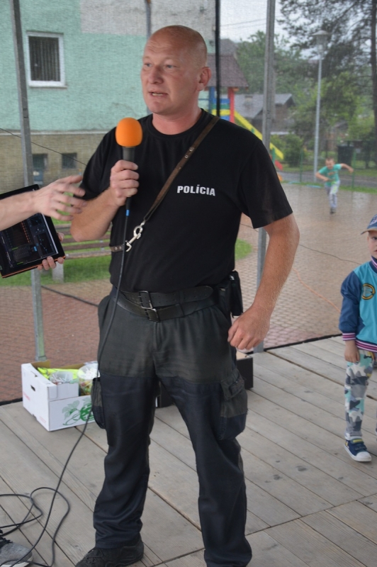 Všetci zúčastnení si mohli pozrieť ukážky práce kynológov so služobnými psami, vozidlá hasičov a policajtov, ktorým fungovali majáky na plné obrátky. Veľký úspech zožalo aj maľovanie na tvár pod vedením riaditeľky ZUŠ A. Nadzamovej, takže po námestí pobehovali aj mimoni, spidermani, víly a iné rozprávkové bytosti. Pekné počasie nám síce prekazili búrky, ale nevadilo ani premočené oblečenie, aby si naše ratolesti užili svoj deň. Dúfame, že sa o rok stretneme spolu opäť a ktovie, možno príde aj kúzelník :)