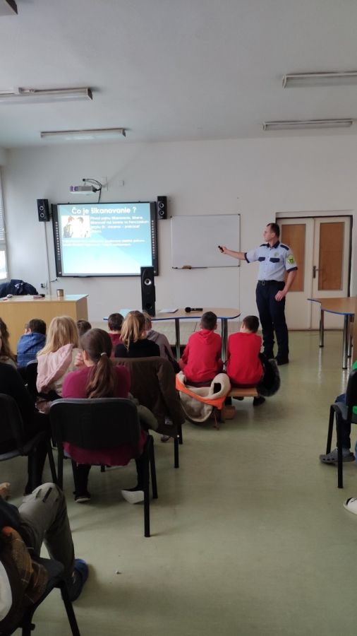 Prednášajúci Mgr. Tomáš Kadura vysvetlil žiakom, čo je šikanovanie, ako sa pred ním môžu brániť a ako sa správať, keď je niekto šikanovaný. Šikanu žiakom vysvetlil aj z pohľadu školskej legislatívy, priestupkovej a trestnej zodpovednosti.