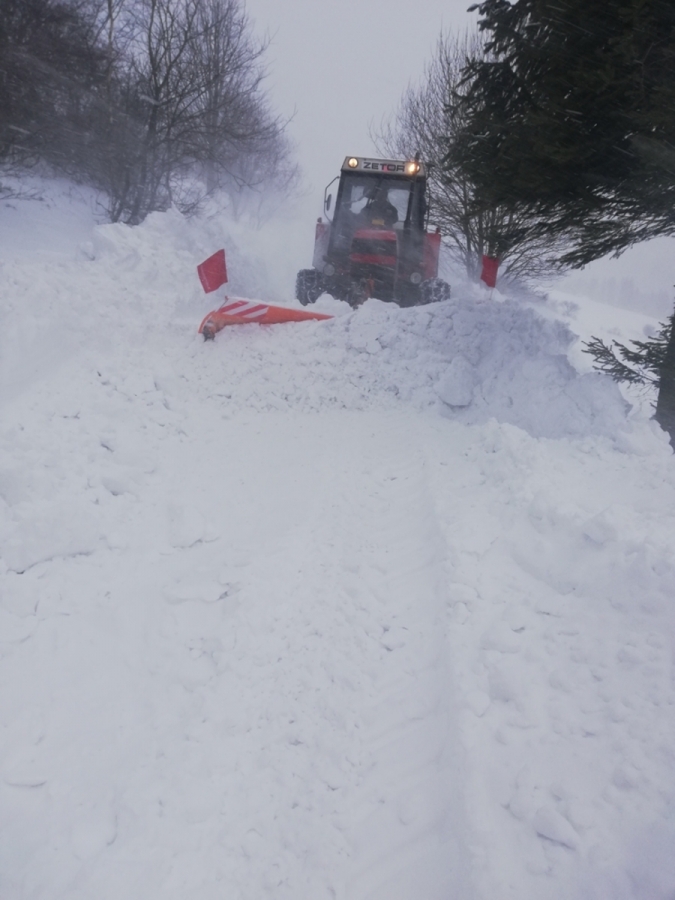 Dnes si mohli vodiči traktorov a inej techniky na chvíľu oddýchnuť, nakoľko počasie prvý deň ustálo a vykukli aj teplé slnečné lúče, ktoré dovolili začať s odvážaním snehovej nádielky a s čistením chodníkov.