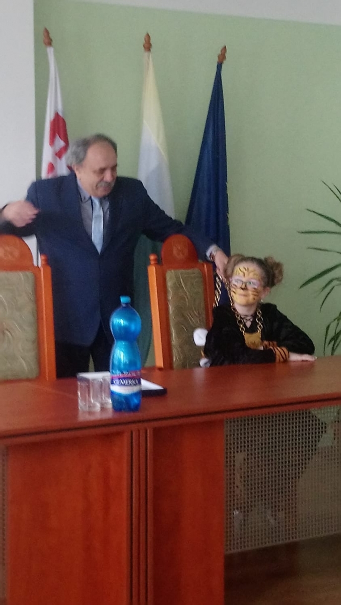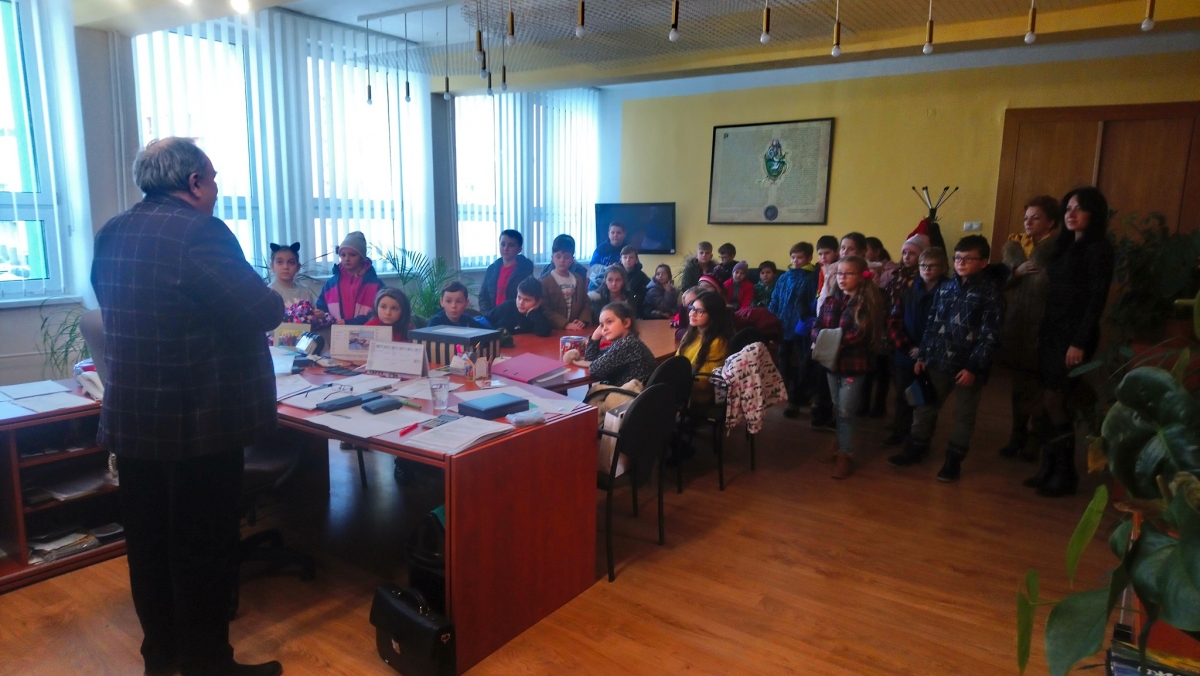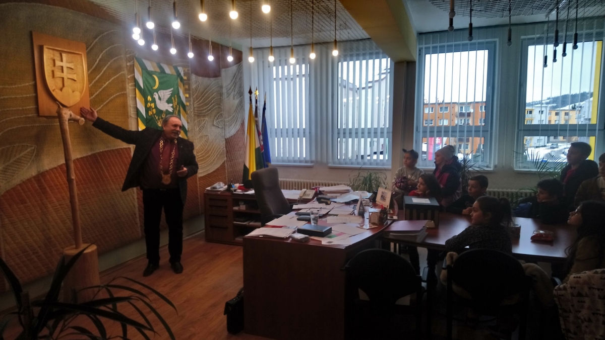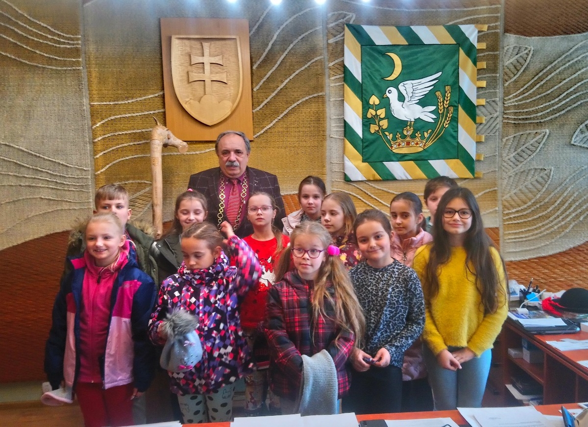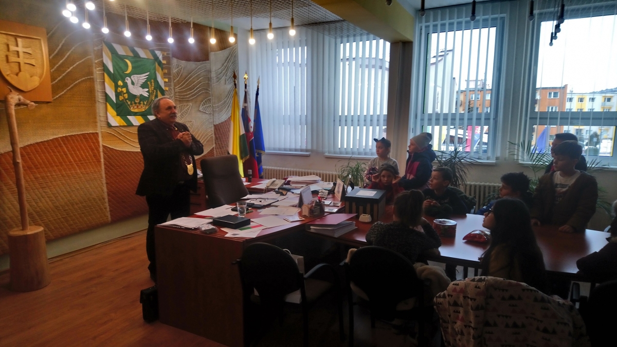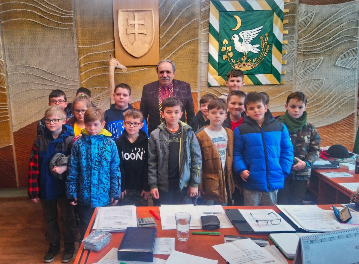 Jozef Grapa, primátor mesta Krásno nad Kysucou, žiačikov prijal najskôr v zasadacej miestnosti mestského úradu, kde ich oboznámil s prácou a s množstvom agendy, ktorú potrebujú vybaviť nielen občania nášho mesta ale aj návštevníci a obyvatelia okolitých miest. Žiaci pochopili, že mesto eviduje každého občana od narodenia, sobáš až po smrť. Dozvedeli sa tiež o tom, aké má mesto kompetencie, s náplňou jednotlivých oddelení a ďalšími úlohami mestskej samosprávy, ktoré musí zabezpečiť pre občanov a ďalšie subjekty pôsobiace na území mesta. Pán primátor ich informoval tiež o tom, že okrem letnej a zimnej údržby, mesto zabezpečuje aj verejné osvetlenie, odvoz separovaného odpadu či vykonáva niekoľko stoviek oprávnení dôležitých pre občanov. Zabezpečuje aj správu školského areálu, opravu a údržbu škôl, športových zariadení, organizuje kultúrne a športové akcie, zabezpečuje zásobovanie pitnou vodou a aktuálne buduje i ďalšiu splaškovú kanalizáciu. Primátor ukázal žiakom zasadaciu miestnosť kde prebiehajú mestské zastupiteľstva. Žiakom požičal insígnie, ktoré sa používajú pri významných udalostiach.