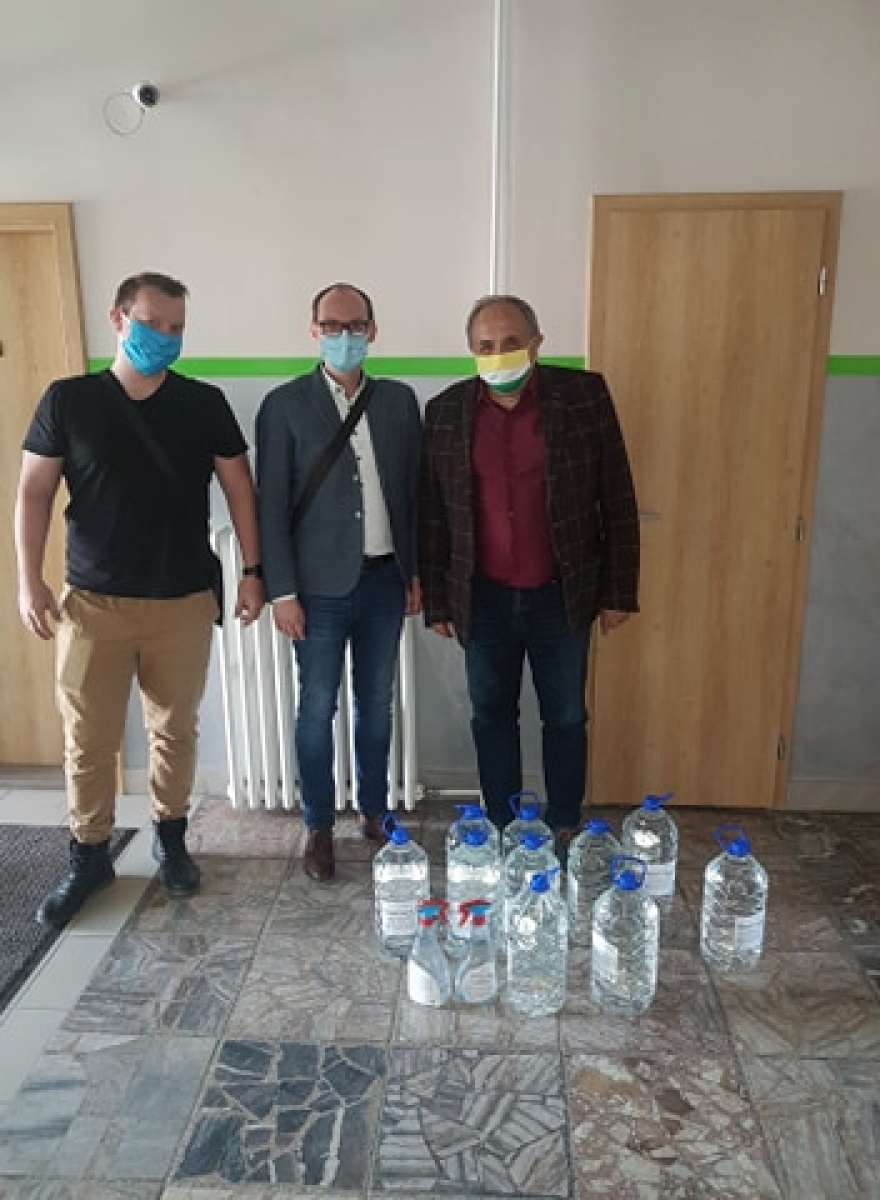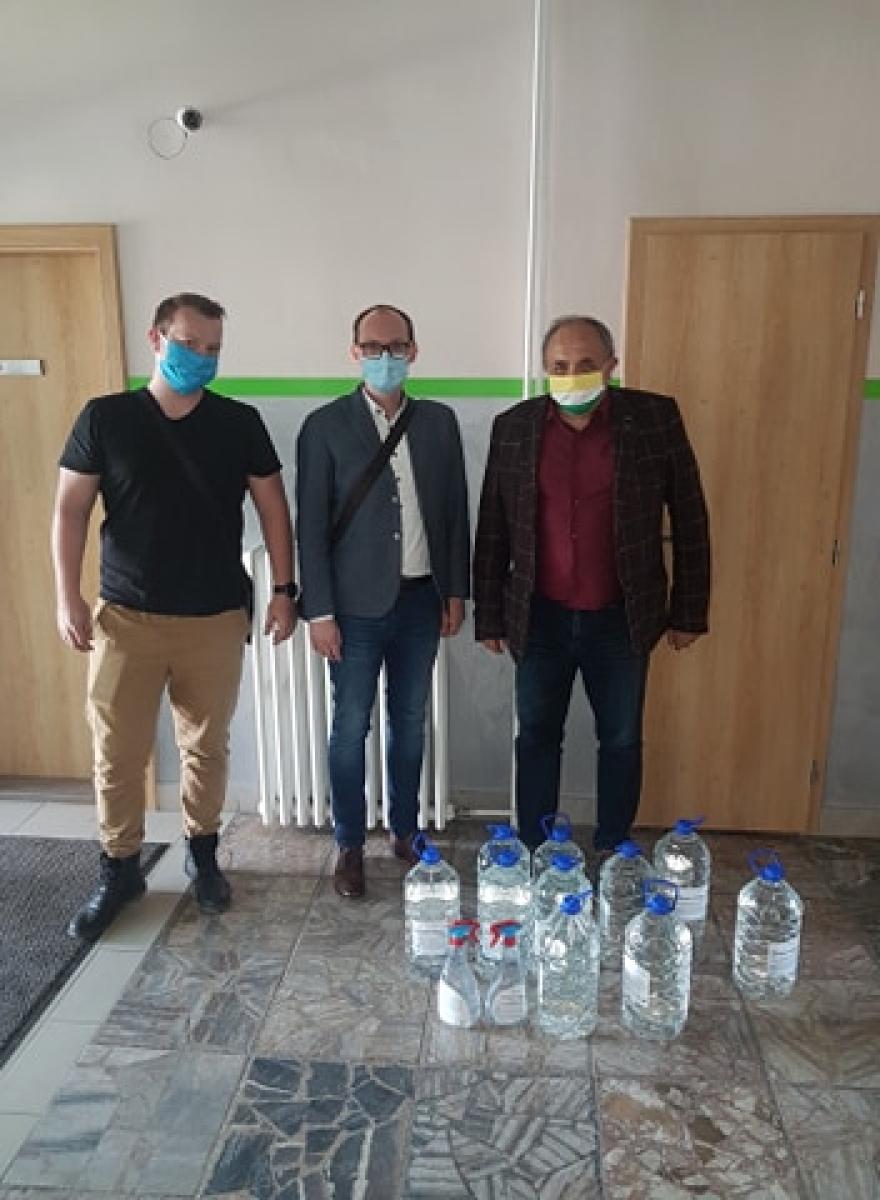 Ruku k dielu priložili aj Erik Poláček a Eduard Halada, ktorí mestu darovali nevyhnutnú dezinfekciu. Včera 27. mája ju odovzdali mestu za čo im primátor Jozef Grapa osobne poďakoval.