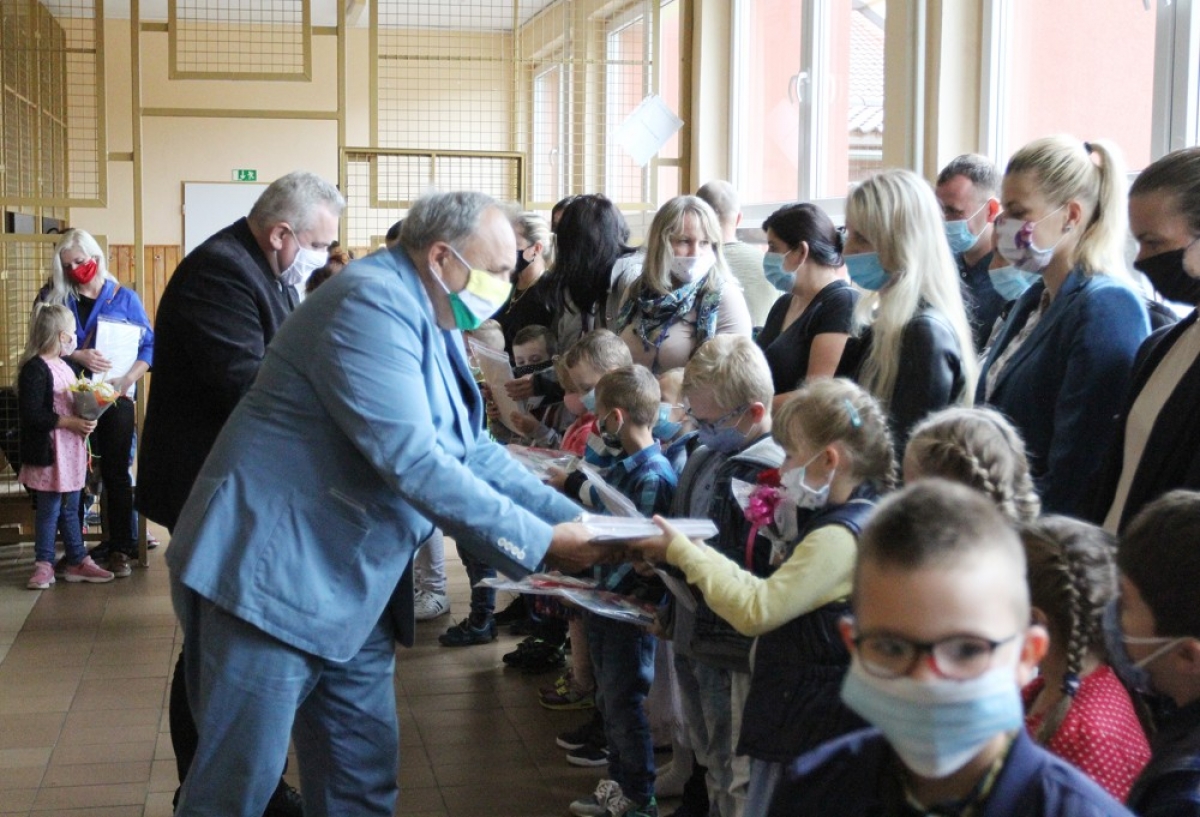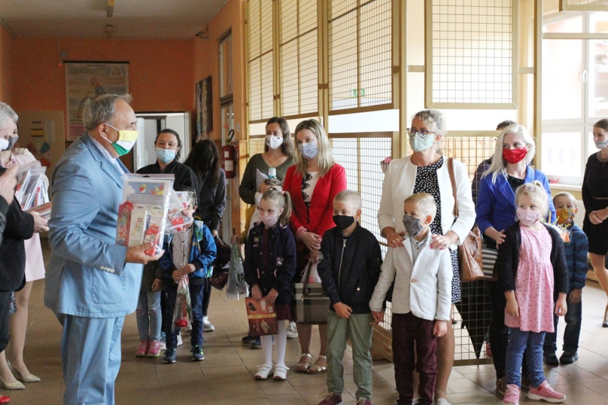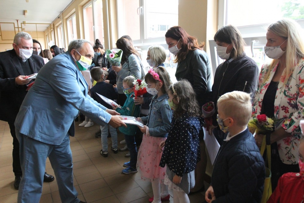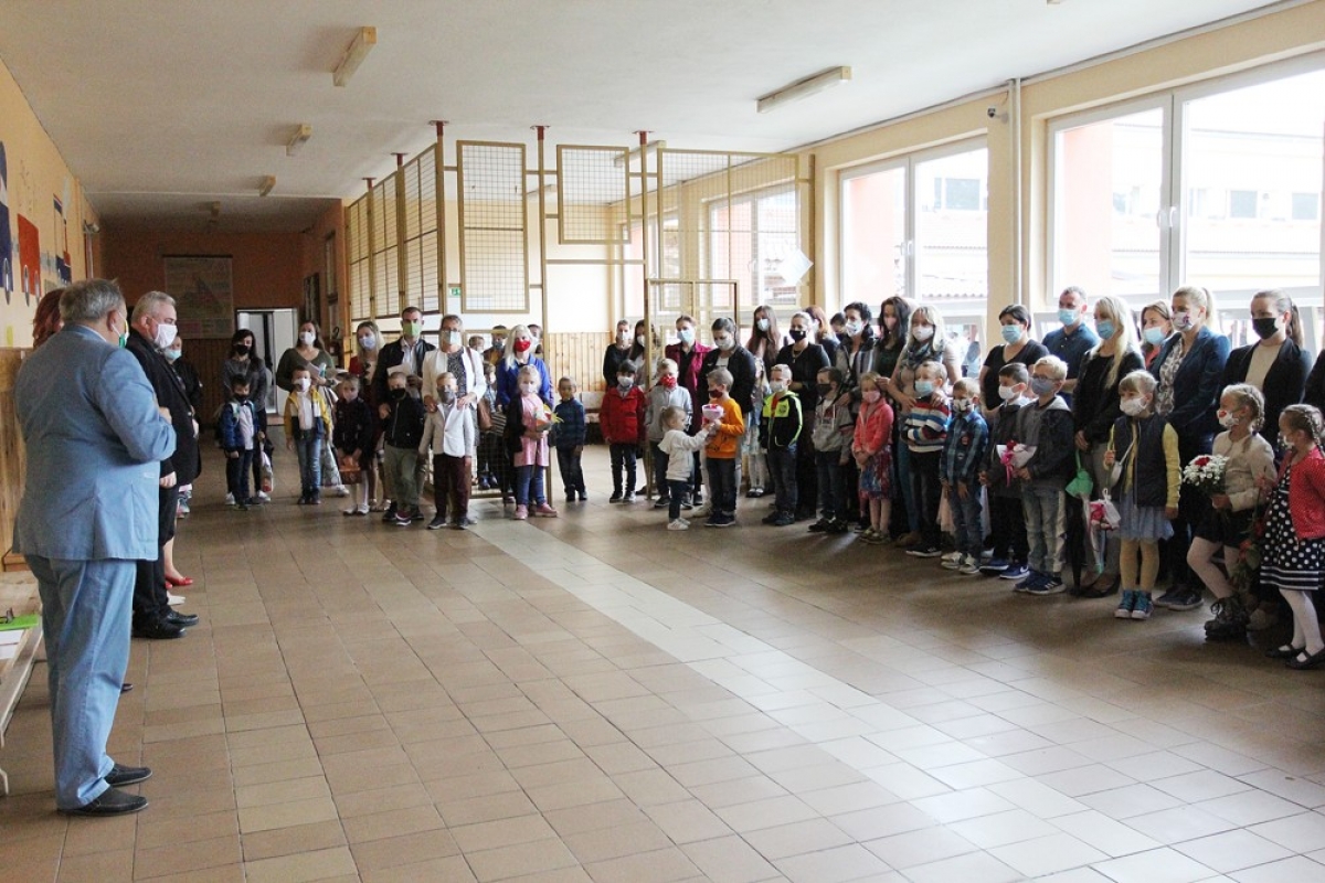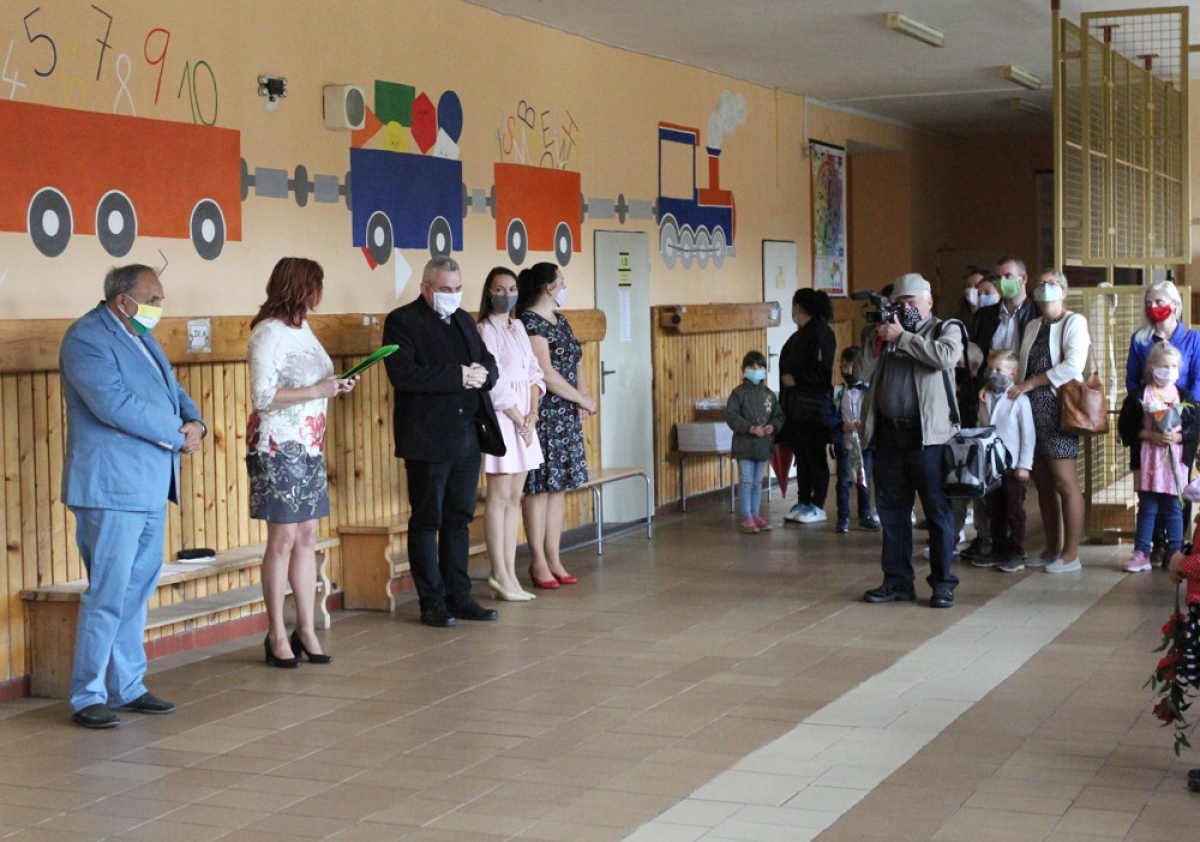 2. septembra na netradičnom otvorení školského roka 2020/2021 privítala zástupkyňa školy Mgr. Renáta Zátková primátora mesta Ing. Jozefa Grapu, dekana farnosti, rodičov, kolegov a 63 malých prváčikov.