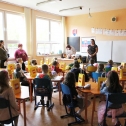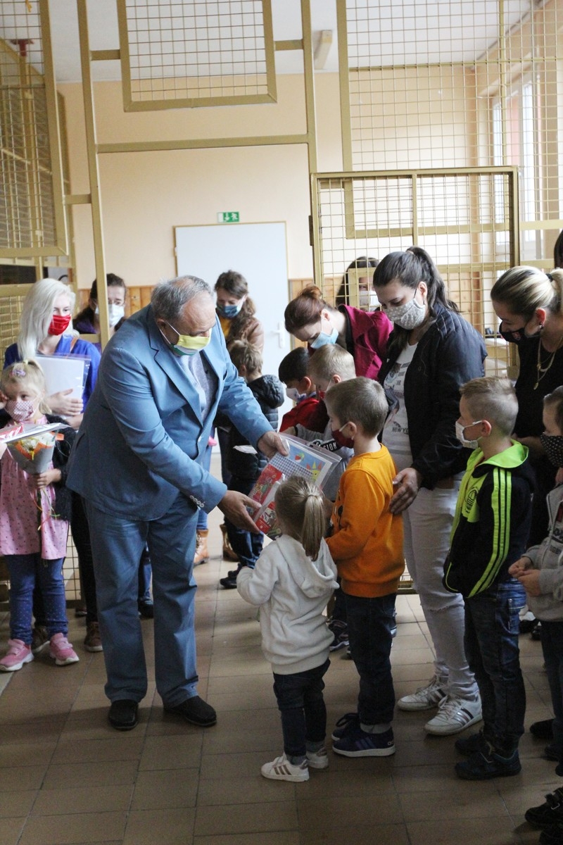 Prváčikom sa prihovoril aj primátor mesta Ing. Jozef Grapa a zároveň im odovzdal pekný praktický darček a potom sa išli naši noví prváčikovia prvýkrát posadiť do lavíc vo svojej triede, kde ich čakal ešte malý darček.