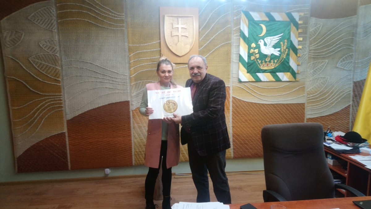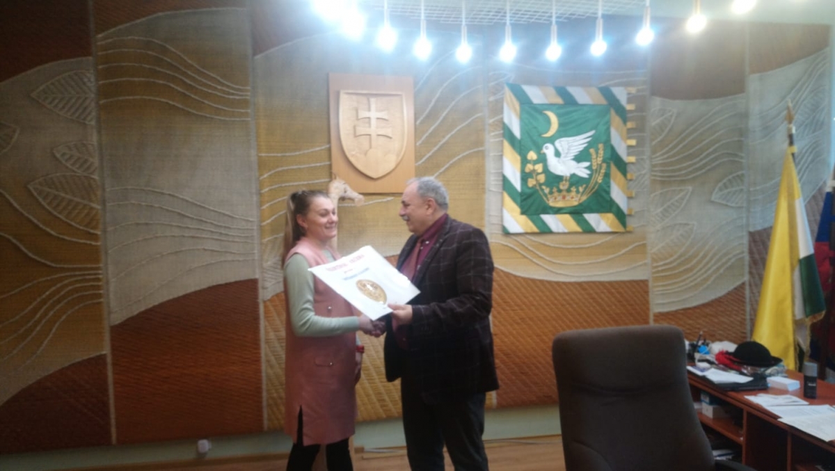 Poukaz na slávnostnú večeru pre dvoch v reštaurácii U Gazdu odovzdal výherkyni našej valentínskej súťaže, Evke Sobolovej, osobne primátor mesta Jozef Grapa.