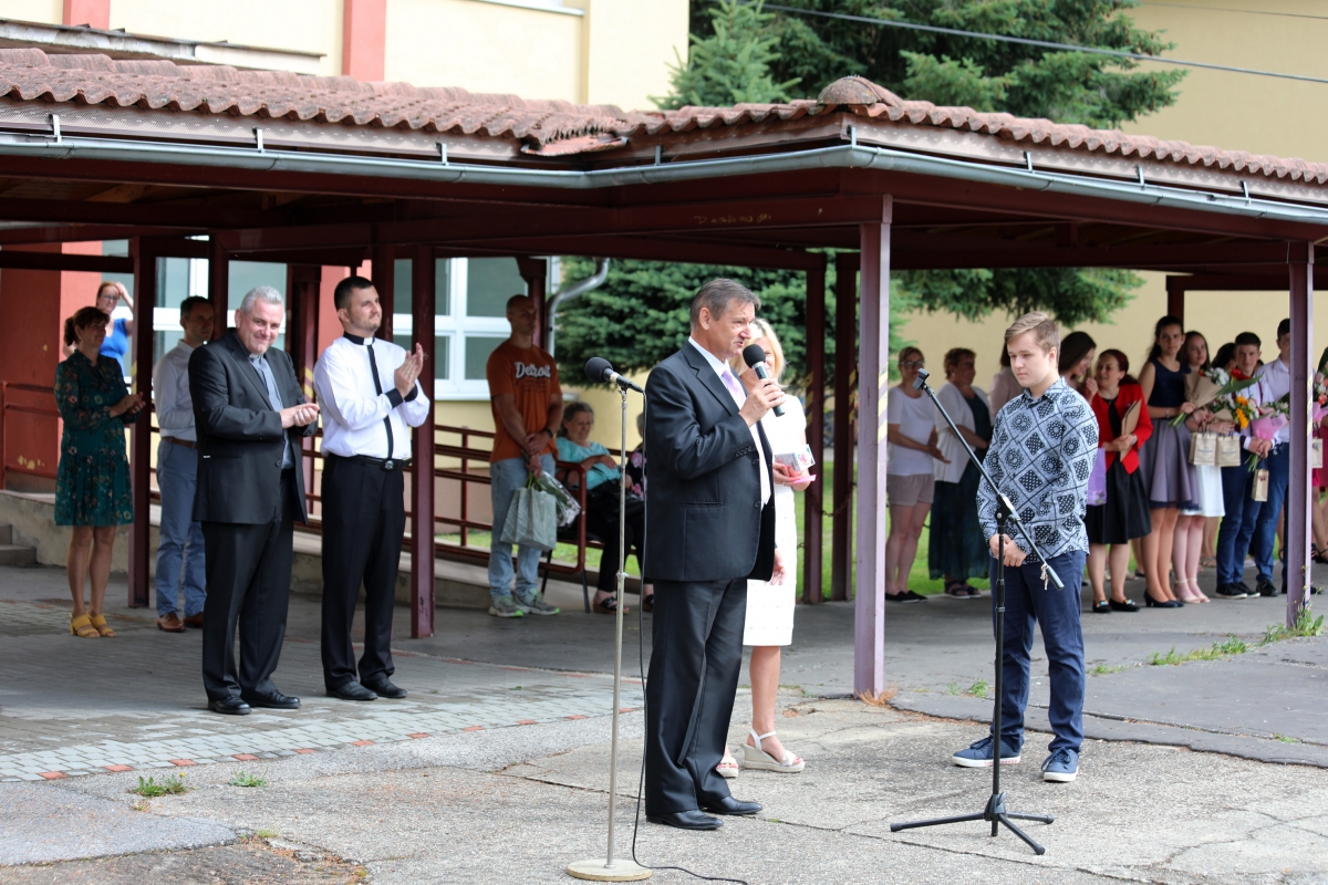 Pred oficiálnym rozdaním vysvedčení sa konala svätá omša v kostole sv. Ondreja apoštola, ktorú celebroval dekan farnosti ICLic. Mgr. Marian Vojtek s kaplánom M. Tichým. Potom sa deti s úsmevom rozbehli na školský dvor, kde ich privítal riaditeľ školy Mgr. Vladimír Targoš spolu s ostatnými pedagógmi.