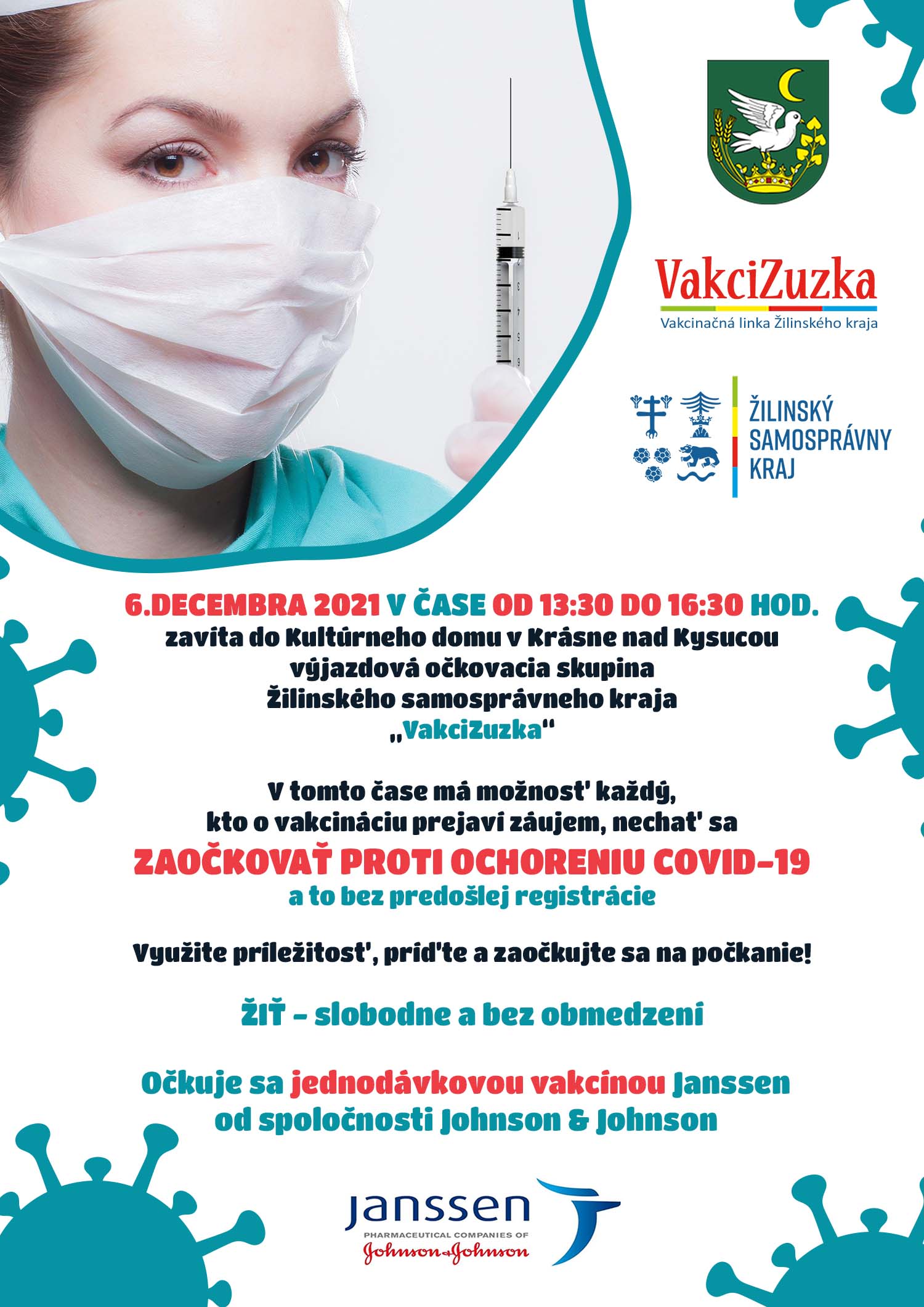 Na základe viacerých podnetov od občanov o možnosti očkovania proti COVID-19, mesto v spolupráci so Žilinským samosprávnym krajom zorganizovalo očkovanie v Krásne nad Kysucou dňa 06. 12. 2021 od 13.30 – 16.30 v Kultúrnom dome.