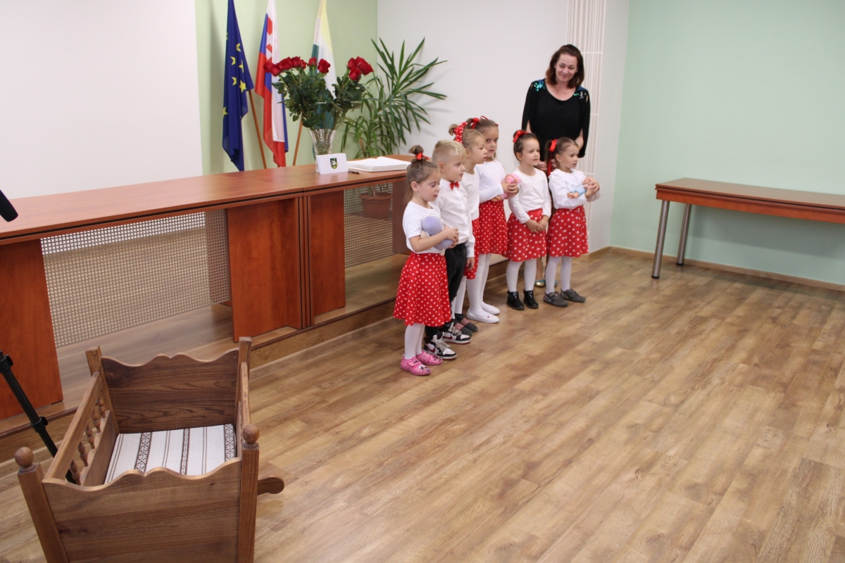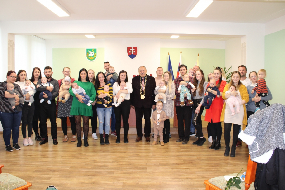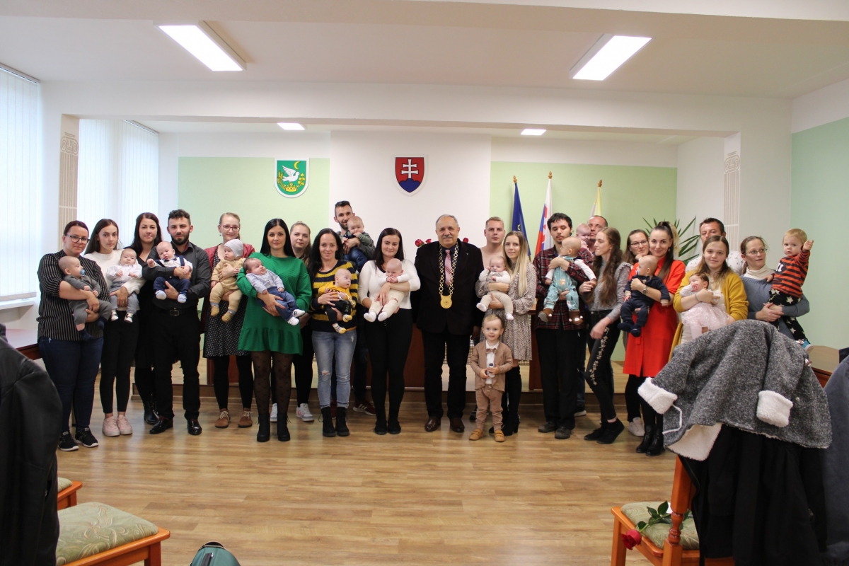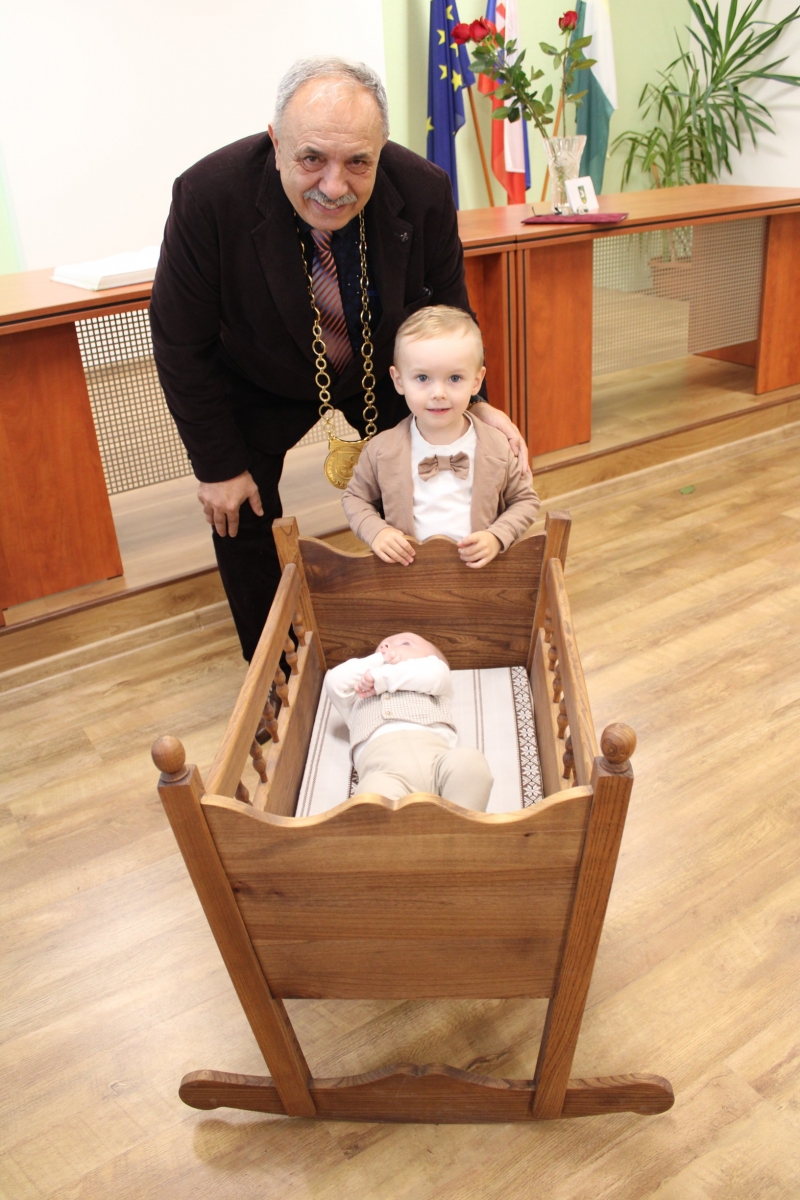 Po slávnostnom príhovore zablahoželal prítomným pozvaným rodičom a mamičkám, odovzdal ružu a finančný príspevok. Prítomní rodičia najmenších občanov mesta sa ešte podpísali do Pamätnej knihy. Dieťatká sa počas týchto úkonov spokojne usmievali v drevenej kolíske a poslušne pózovali pred fotoaparátom a kamerou.