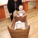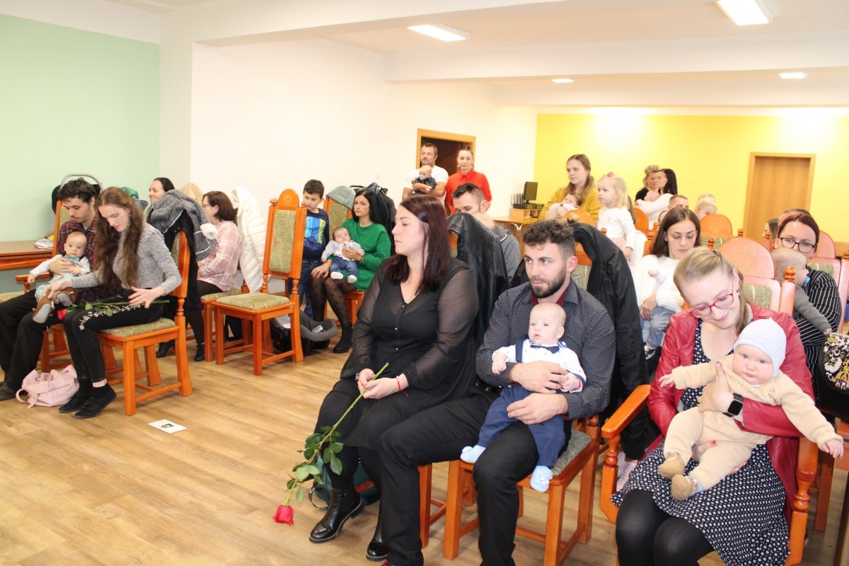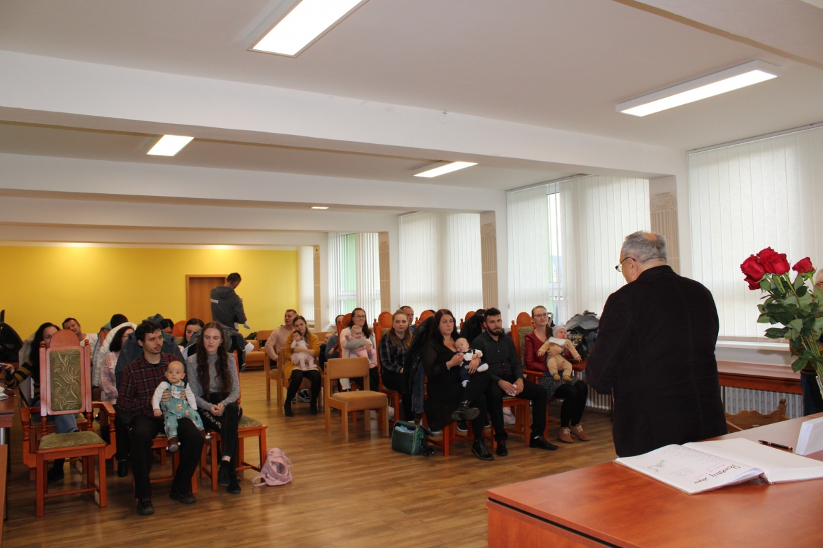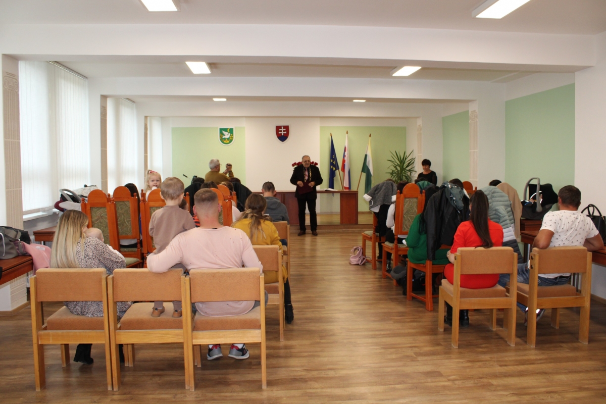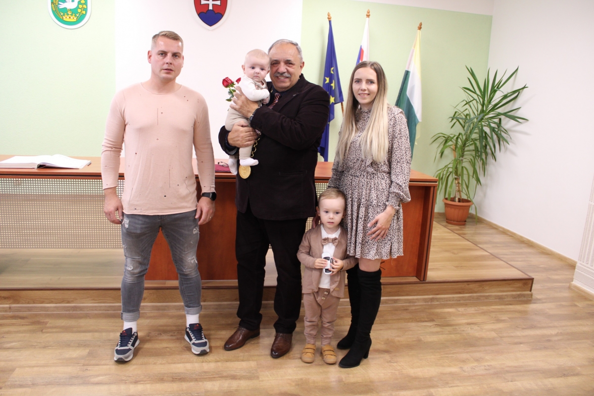 Po slávnostnom príhovore zablahoželal prítomným pozvaným rodičom a mamičkám, odovzdal ružu a finančný príspevok. Prítomní rodičia najmenších občanov mesta sa ešte podpísali do Pamätnej knihy. Dieťatká sa počas týchto úkonov spokojne usmievali v drevenej kolíske a poslušne pózovali pred fotoaparátom a kamerou.