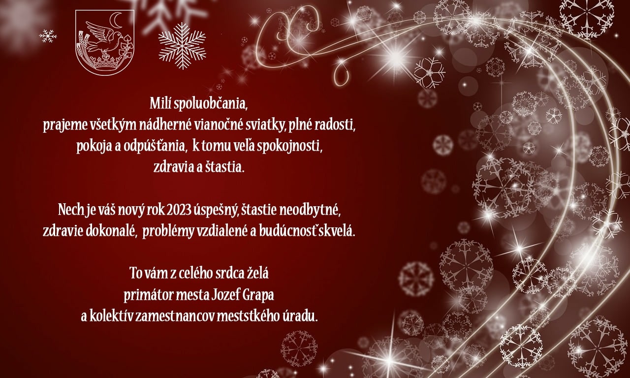 Požehnané vianočné sviatky a veľa šťastia v Novom roku praje