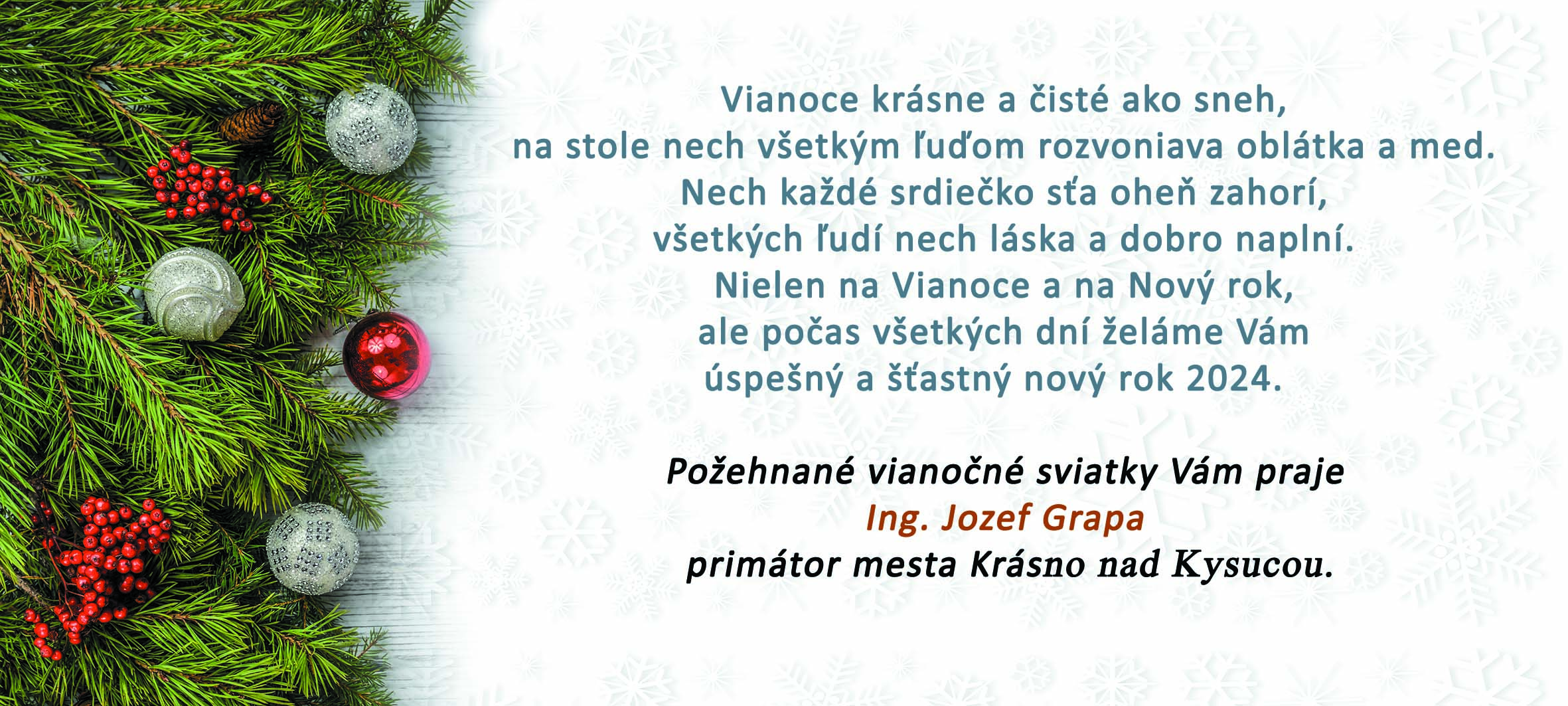 Pokojné a radostné prežitie vianočných sviatkov a šťastný nový rok 2024 Vám praje