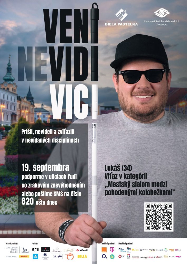 Alebo: prišli, (ne)videli – a napriek tomu zvíťazili v každodenných disciplínach. Aj tak by sa dalo opísať motto aktuálneho ročníka zbierky Biela pastelka, ktoré upriamuje pozornosť verejnosti na skutočnosť, že aj bez zraku možno zvládnuť výzvy bežného dňa – hoci niektoré z nich sú náročnejšie, než si my, vidiaci, vieme predstaviť. Aby nevidiaci dokázal bezpečne prejsť ulicu, dostať sa do práce či školy, alebo si bez nehody naliať horúcu vodu do šálky kávy, musí sa to najskôr naučiť. Práve v tom mu pomáha Únia nevidiacich a slabozrakých Slovenska – aj vďaka darcom, ktorí podporujú verejnú zbierku Biela pastelka.