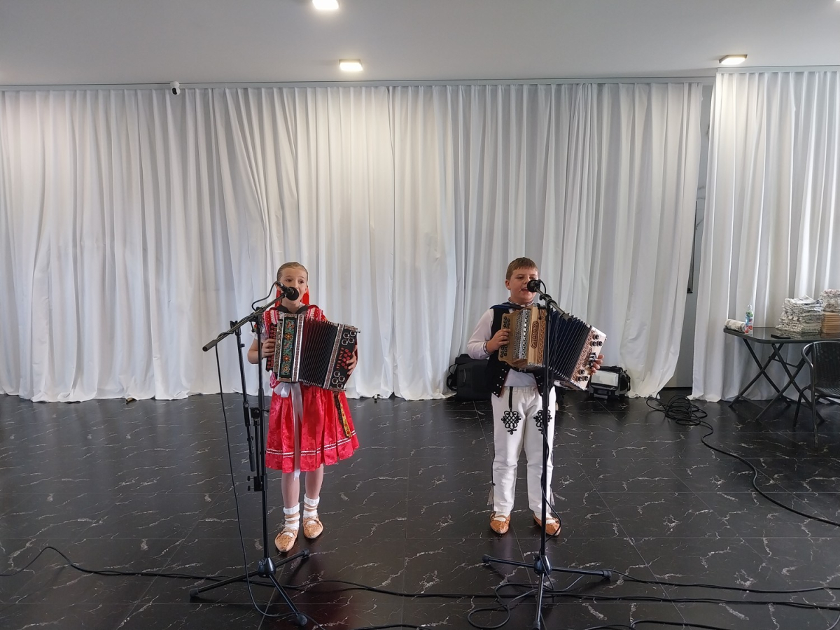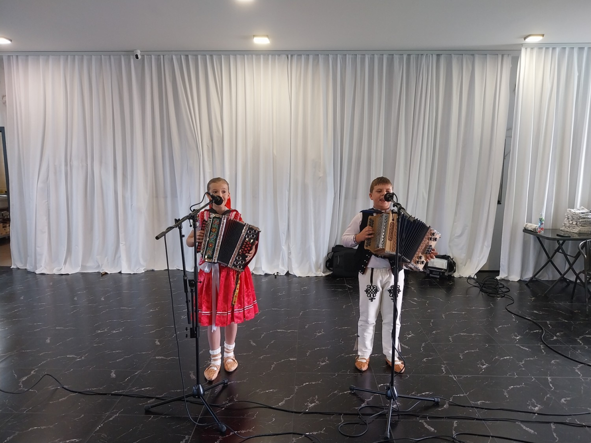 Kultúrny program pripravila Barborka Šusteková a s Jakubkom Kolembusom, ktorí sú dokonale zladení nielen spevom ale aj v hre na heligonkach. Potešili každého jubilanta, za odmenu si vyslúžili veľký potlesk.