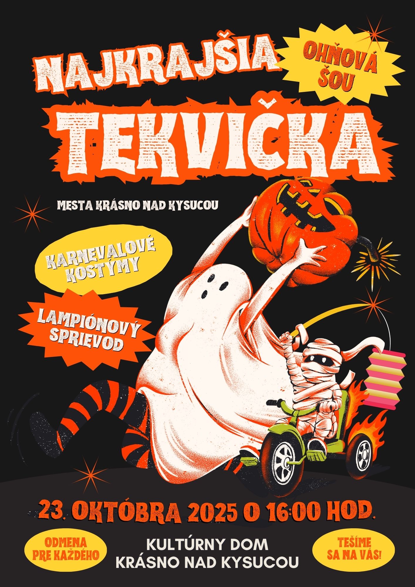 Mesto Krásno nad Kysucou pozýva všetky deti, rodičov aj priateľov jesene na obľúbené podujatie Najkrajšia tekvička, ktoré sa uskutoční vo štvrtok 23. októbra 2025 o 16:00 hod. v kultúrnom dome v Krásne nad Kysucou.