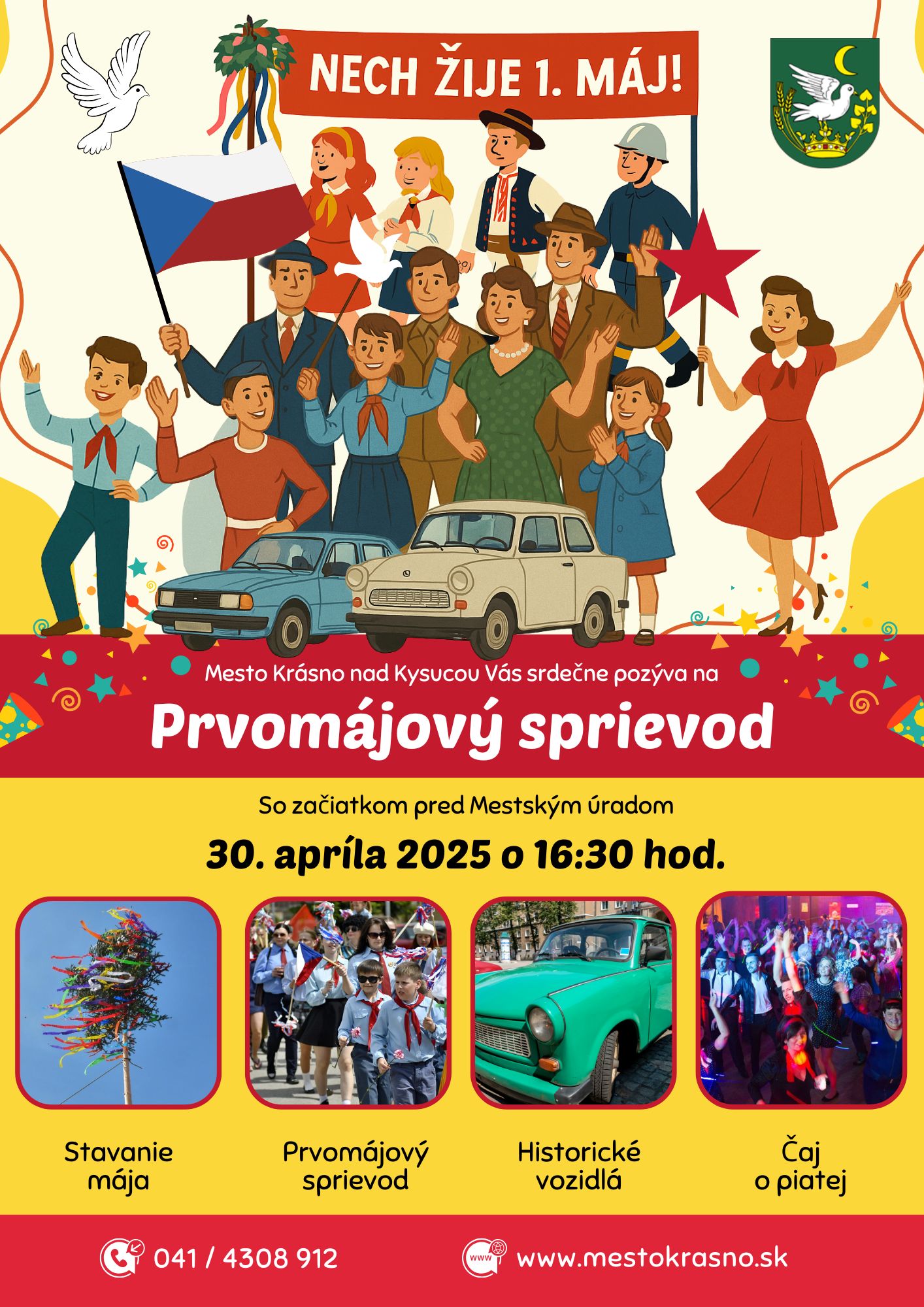 Mesto Krásno nad Kysucou Vás srdečne pozýva na tradičné Stavanie mája, ktoré sa uskutoční v stredu 30. apríla 2025 o 16:30 hod. pred Mestským úradom.
