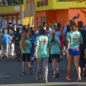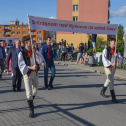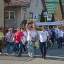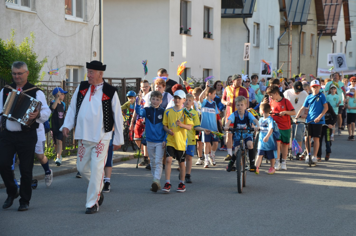 Sprievod vyrazil spred metského úradu po Ulici 1. mája. Do sprievodu sa zapojili stovky ľudí, športovci, folkloristi v nažehlených krojoch, natešení pionieri, hasiči, súdruhovia družstevníci s fekálnou cisternou a hlavne deti, ktoré si takúto nevídanú akciu poriadne užívali. Mávali mávatkami, vlajočkami, usmievali sa na divákov okolo cesty a tí ich vítali potleskom.