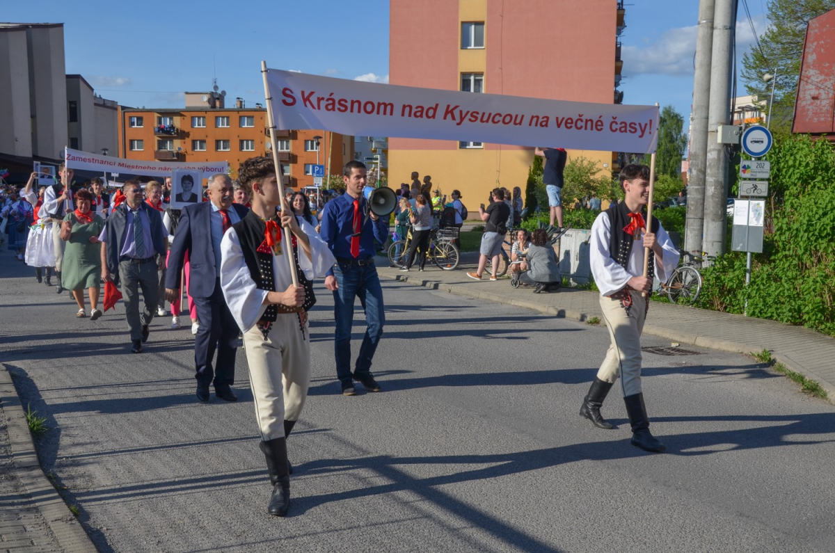 „Naše mesto oslavuje v tomto roku sedemstoročné jubileum a my sme sa rozhodli, že každé tradičné podujatie v meste ozvláštnime. A čo iné predviesť pred prvým májom, ako prvomájový sprievod, ktorý nám pripomenul jednu z historických etáp nášho mesta. My sme radi, že sa ľudia bavia a robia si srandu z toho, čo bolo kedysi dávno povinné a trápne,“ prezradil primátor Krásna nad Kysucou Jozef Grapa.