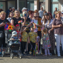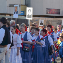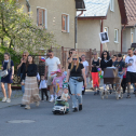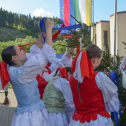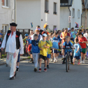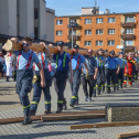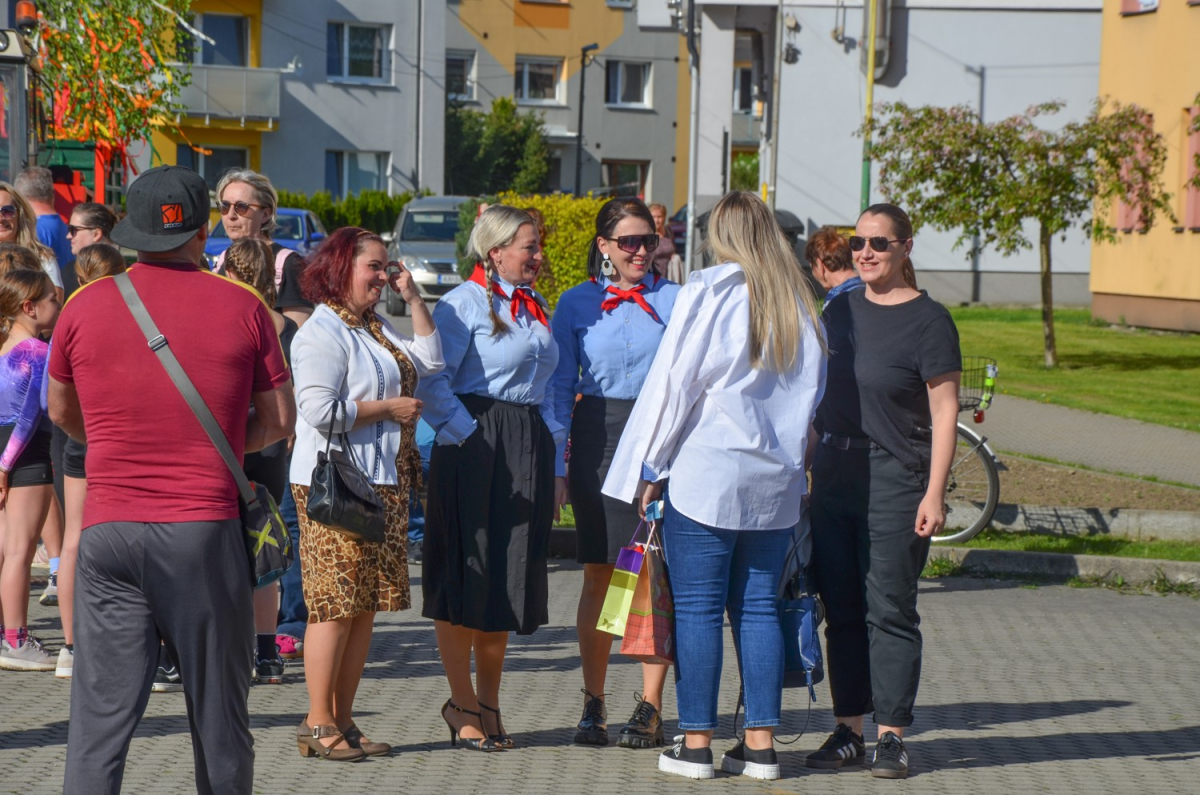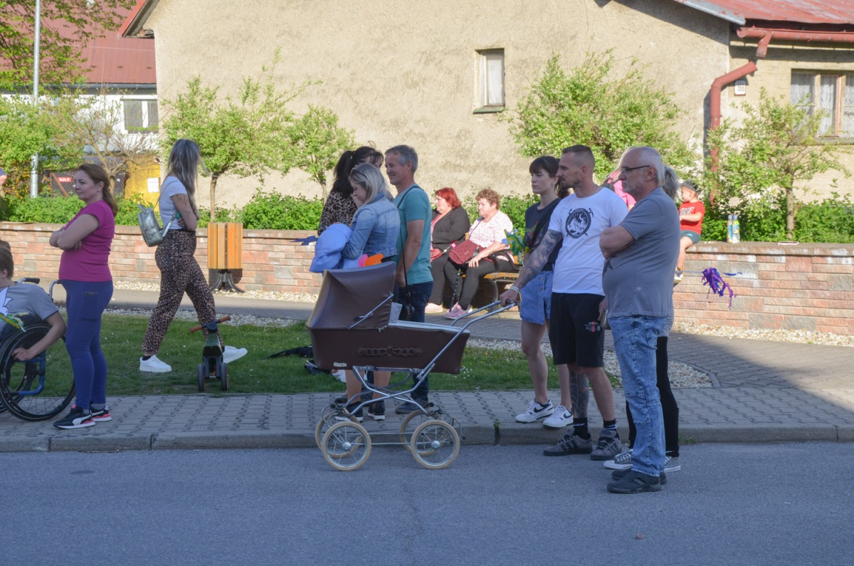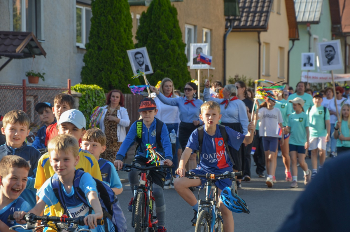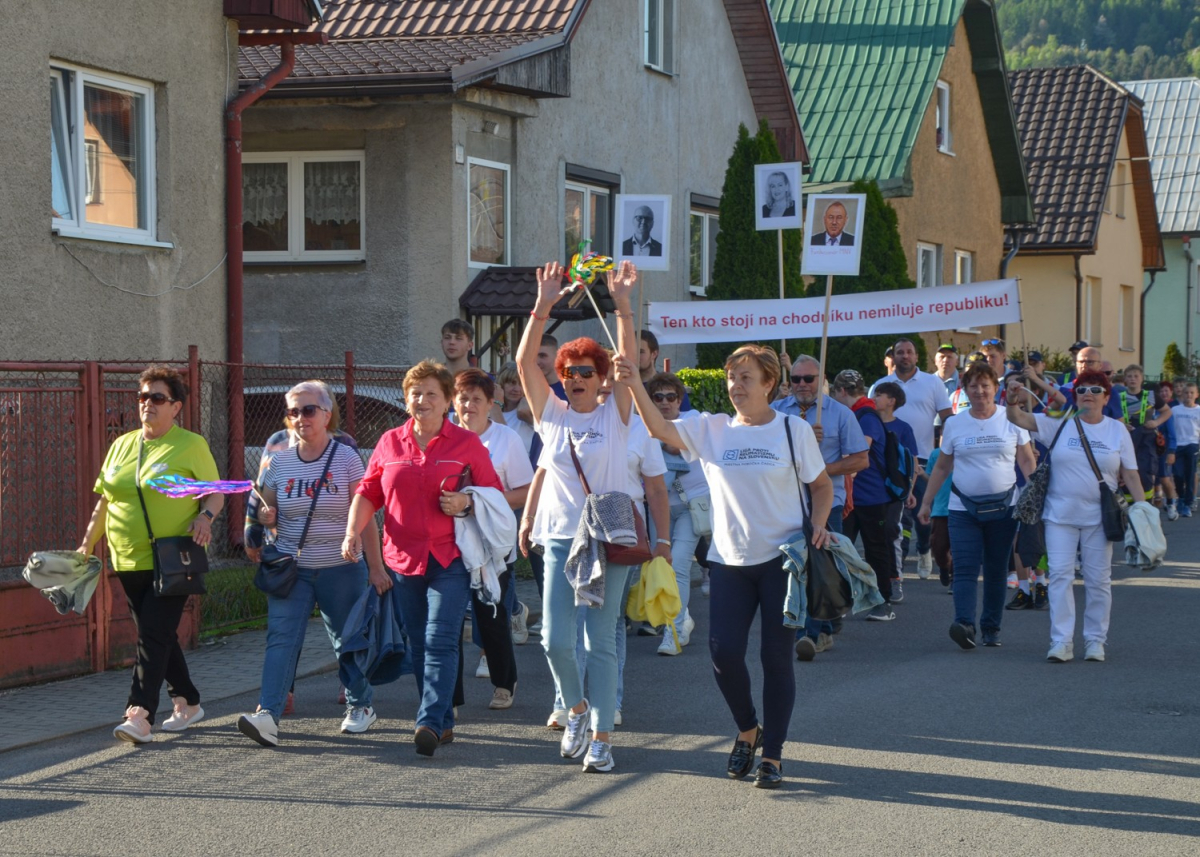 Pionierské šatky, pestrofarebné mávatká a holubice mieru nechýbali na humornom prvomájovom sprievode 30. apríla 2025 v meste Krásno nad Kysucou.