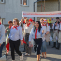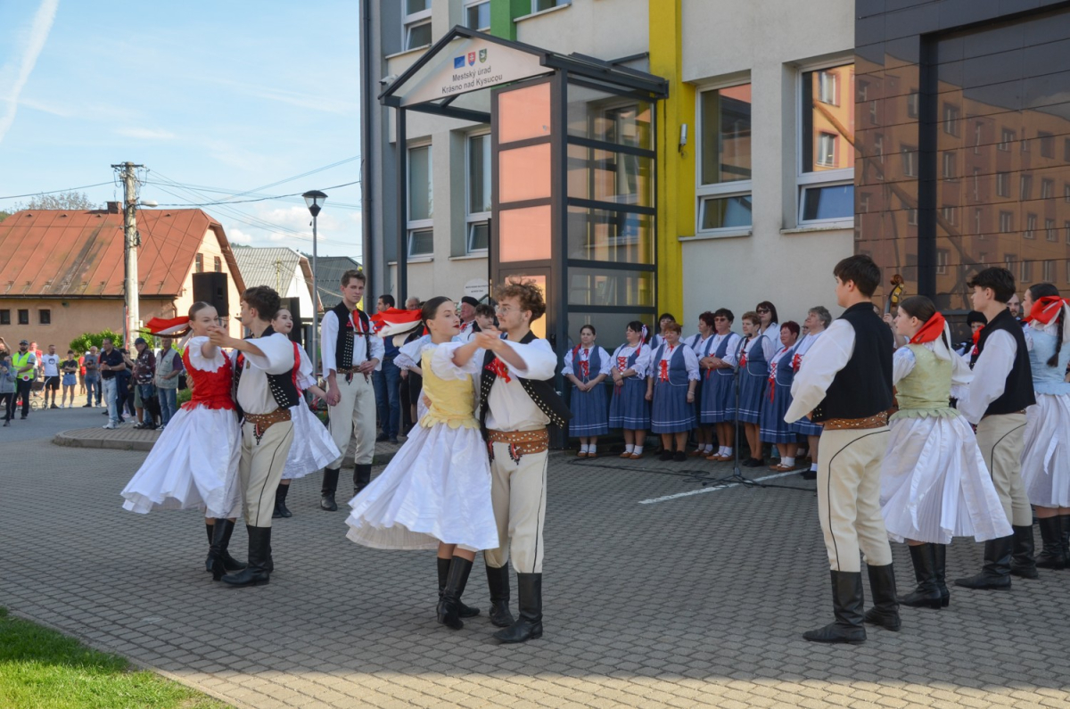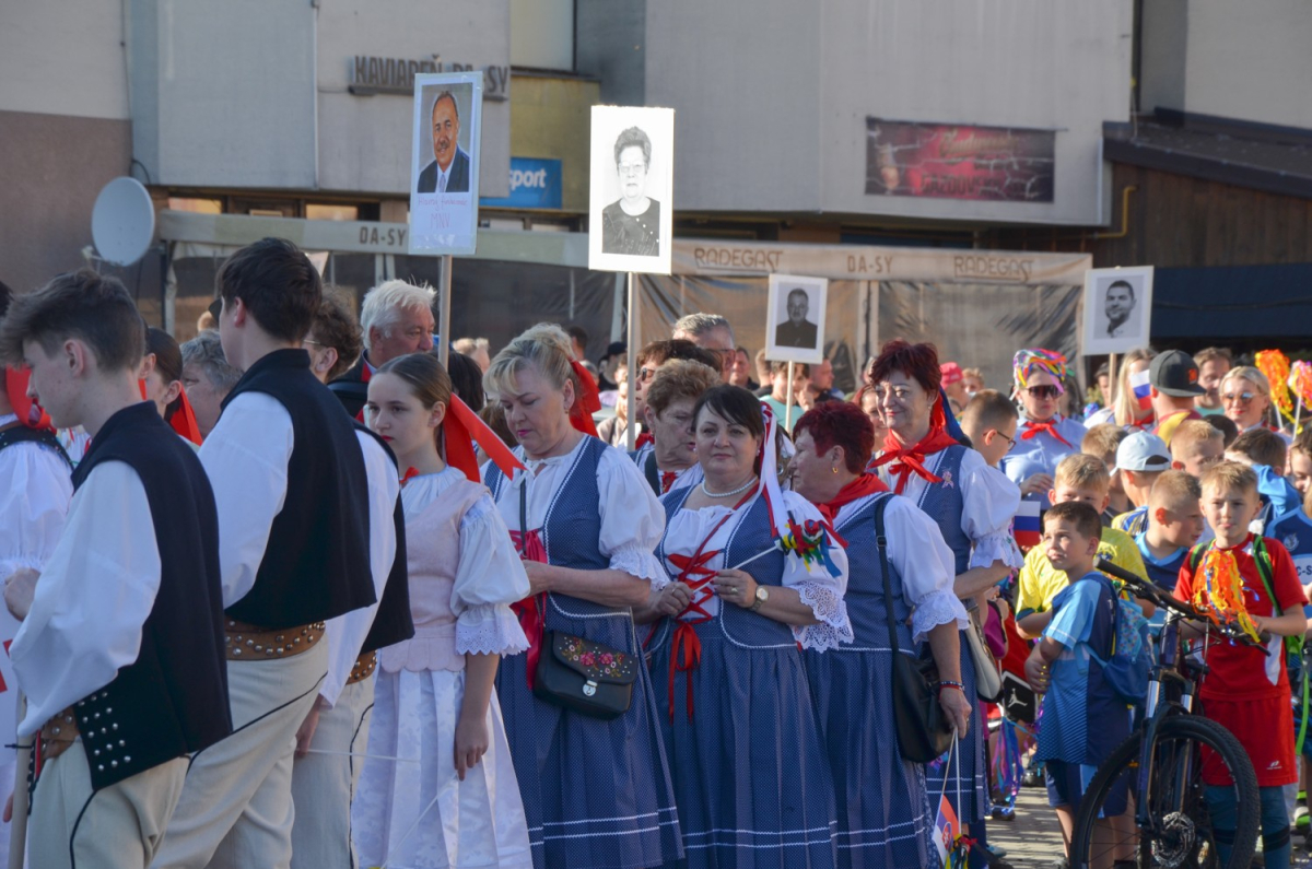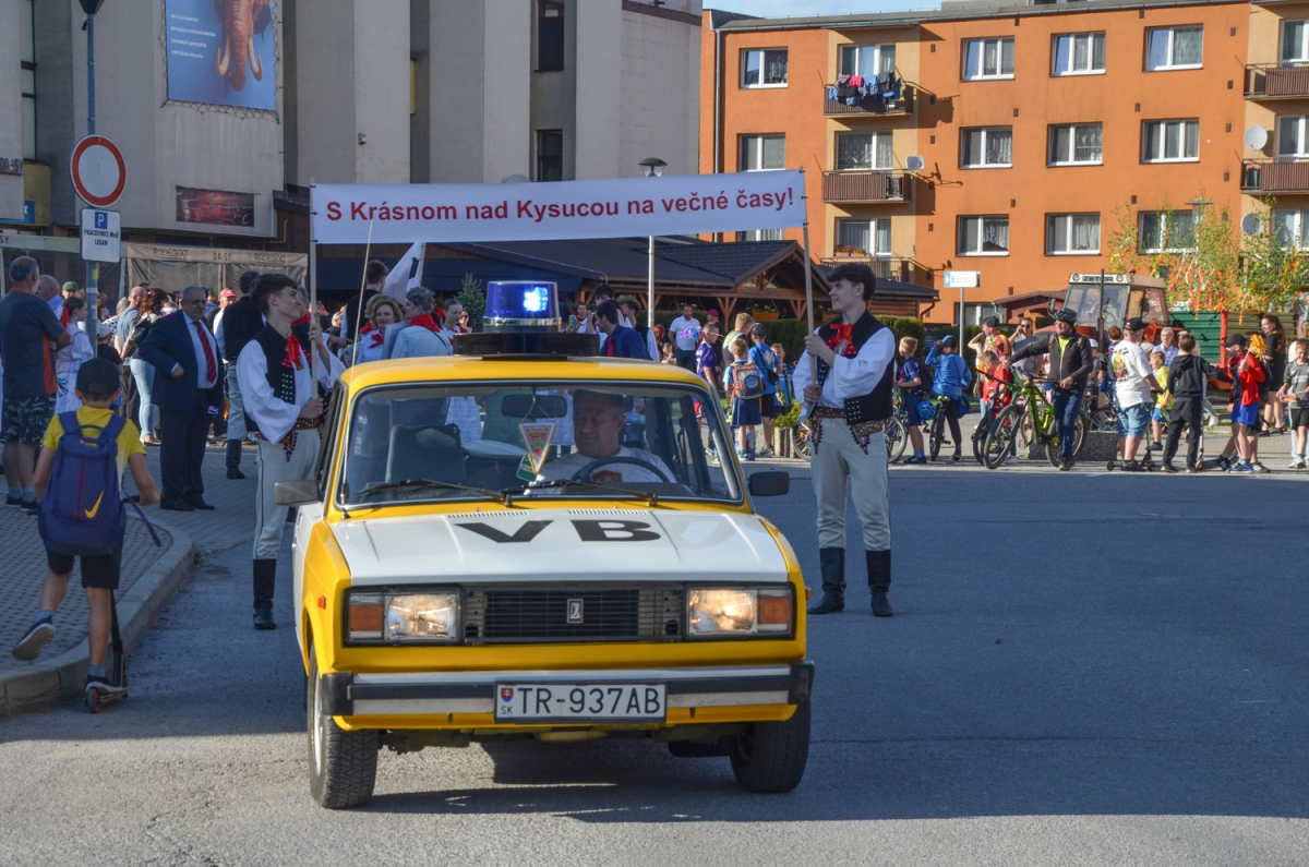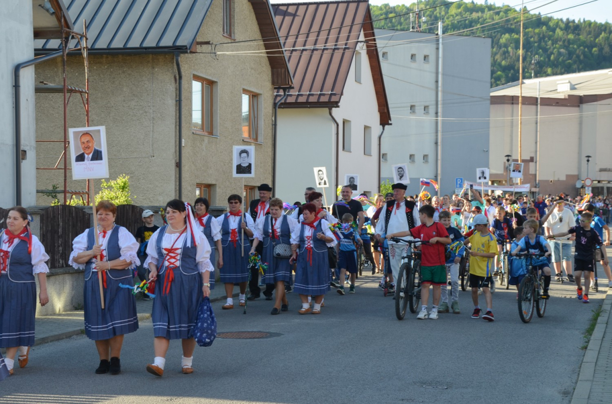 Obrovský úspech zožal aj traktor s nazdobenou vlečkou a heslom Občania všetkých osád, spojme sa! Folkloristi na čele sprievodu niesli transparent s nápisom s Krásnom nad Kysucou na večné časy!
