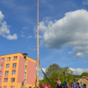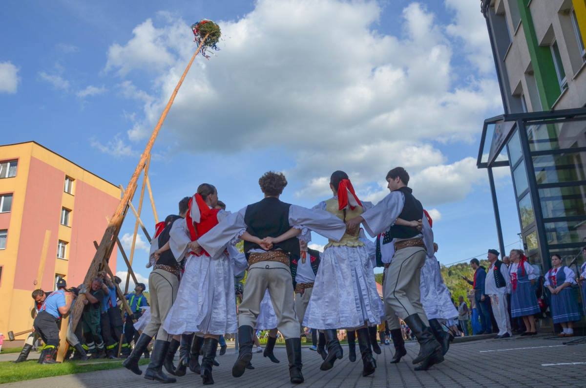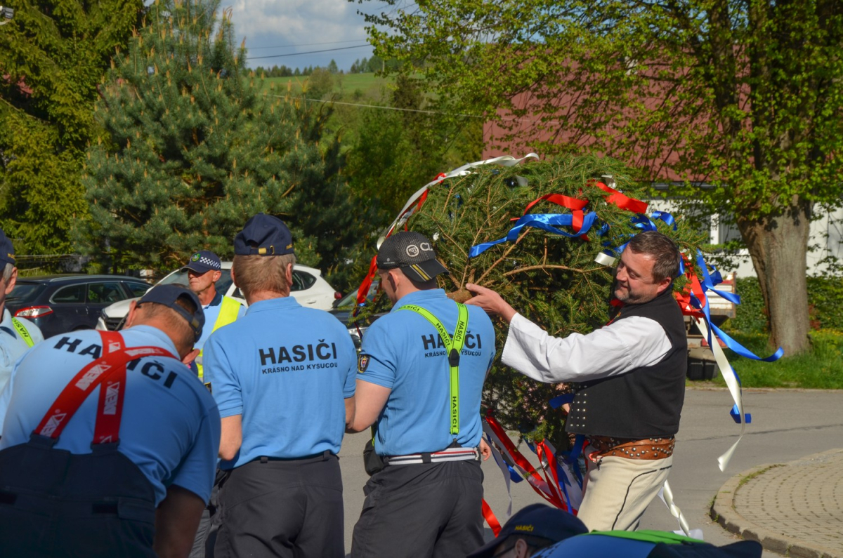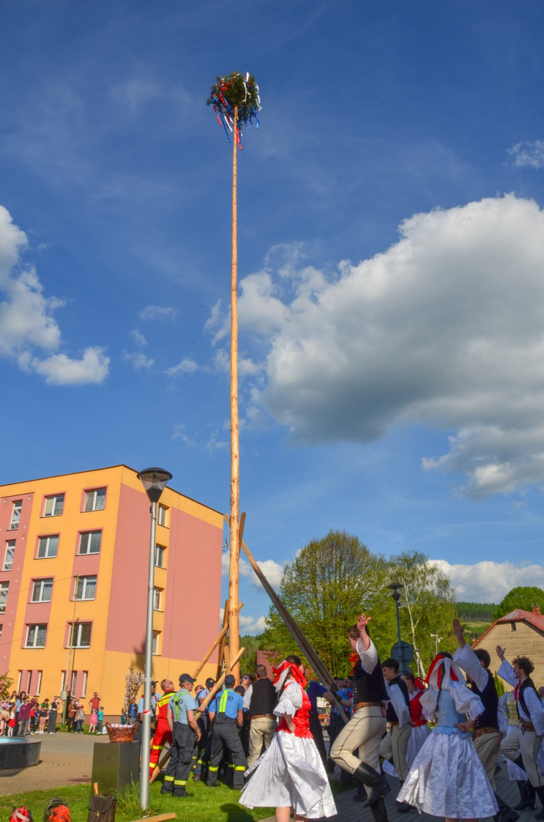 V predvečer prvého mája dobrovoľní hasiči spolu s FS Drevár postavili máj, ktorý je ozdobenými stužkami v slovenskej trikolóre.