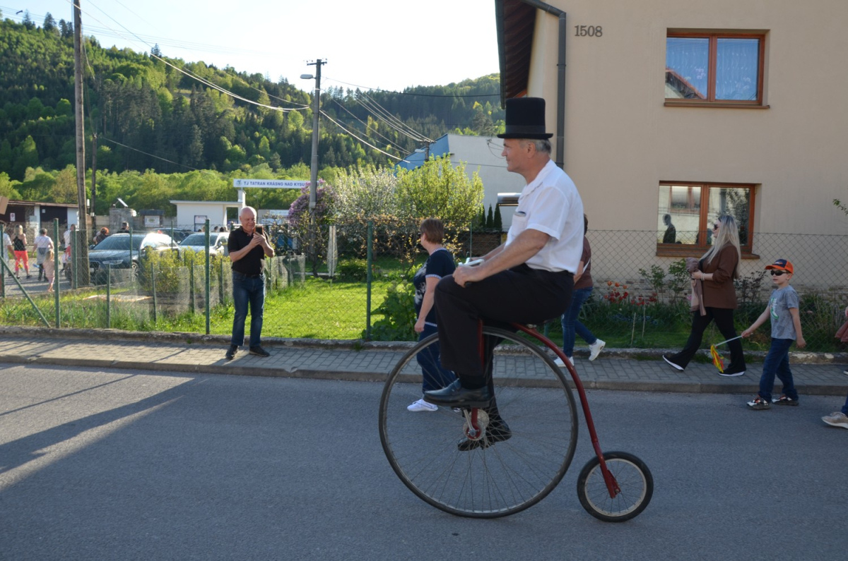 V tomto roku však získal predvečer prvého mája úplne nový punc. Mesto sa na pár hodín vrátilo do socialistických čias. V uliciach nechýbali ozdobené traktory, žltobiele autá s logom VB, staré embéčky, usmievaví ľudia nesúci transparenty s dobovými, no vtipne upravenými heslami. Prvomájový sprievod, ako vystrihnutý z dôb minulých, prešiel mestom. Z ampliónov zneli do kroku budovateľské piesne.