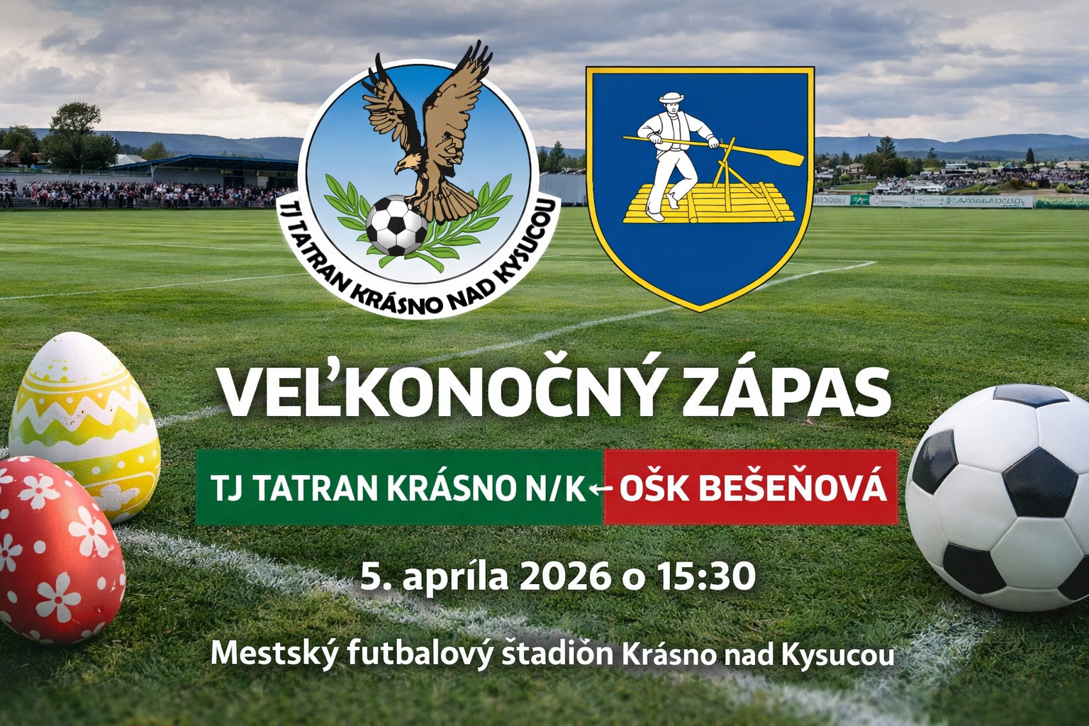 Zápas sa odohrá na Veľkonočnú nedeľu 5. apríla 2026 o 15:30 hod. na mestskom futbalovom štadióne v Krásne nad Kysucou.