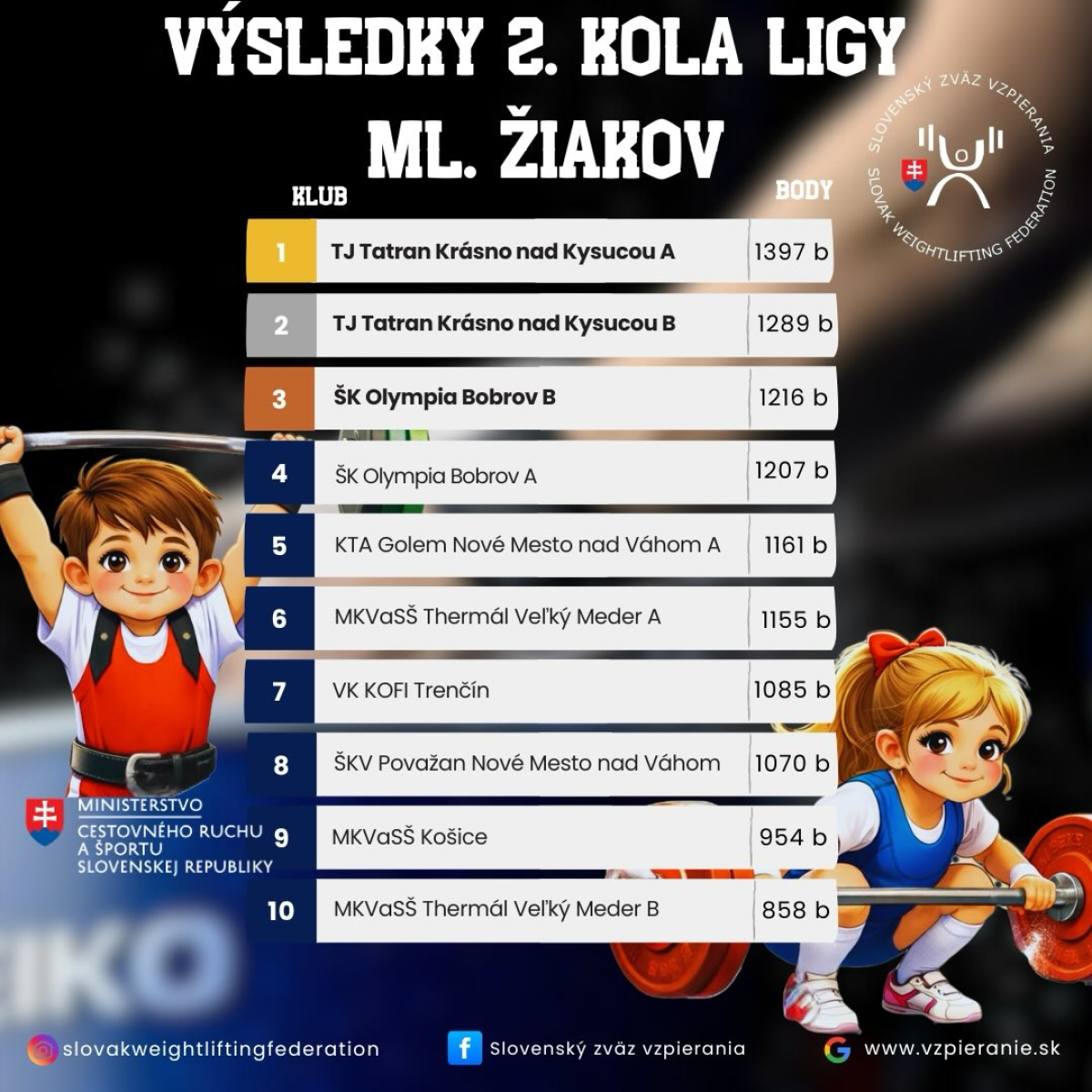 V celkovom poradí po druhom kole tak vzpierači z Krásna nad Kysucou doslova prevalcovali konkurenciu a suverénne obsadili prvé aj druhé miesto.